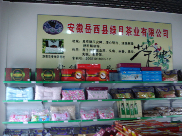 安徽綠月茶業有限公司是一傢集生產茶葉、土特產、野菊花保健枕的專業公司,擁有完整質量管理體系,及研發能力。公司生產的七仙女牌,野菊花安神茶香枕系列產品,已向國傢申請發明專利(專利號:200810180557.2)此保健枕開發,依托:浙江醫科大學博士生導師教授宋必衛先生的科研成果。利用大別山野生黃菊花為主要原料,加之大別山無污染茶葉、桑葉、銀杏葉、金銀花、決明子等10味中藥組成配方,對失眠、健忘、視力下降、高血壓等人群,有很好的輔助治療作用。