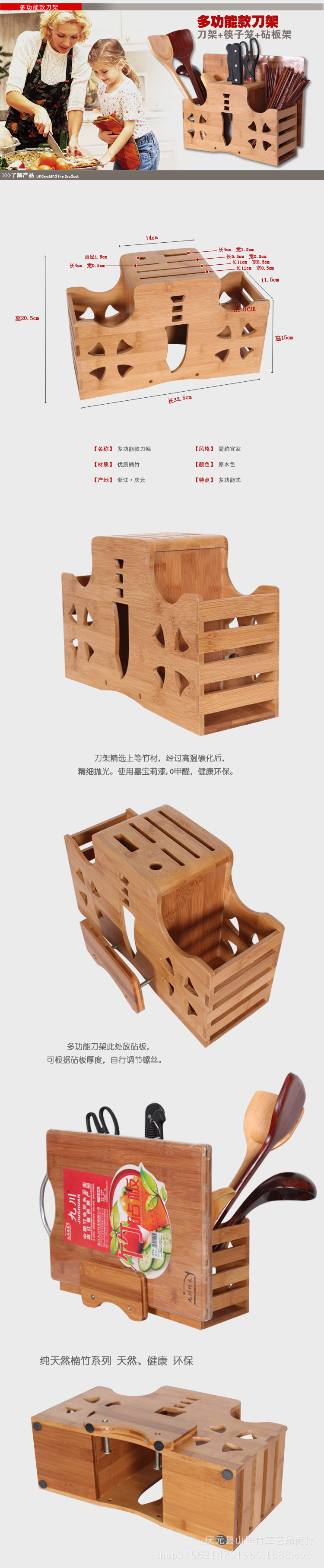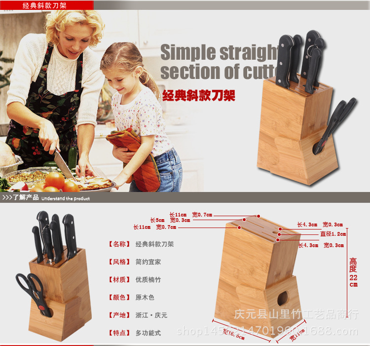 采用優質楠竹,以現代工藝精致加工而成, 不開裂,不發黴,易清洗,九孔設計,可放置六把刀 具和其他工具,款式新穎高端,使用更方便。設計改 變生活,從此愛上廚房!