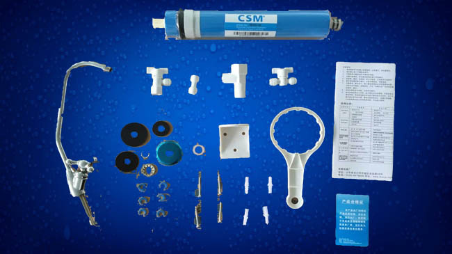3號箱-配件箱-合格證、說明書、管子、扳手、RO反滲透膜、水龍頭、進水三通及閥 門、壓力桶球閥等相關配件。具體看機器需求