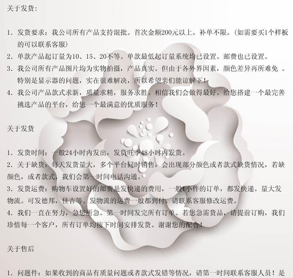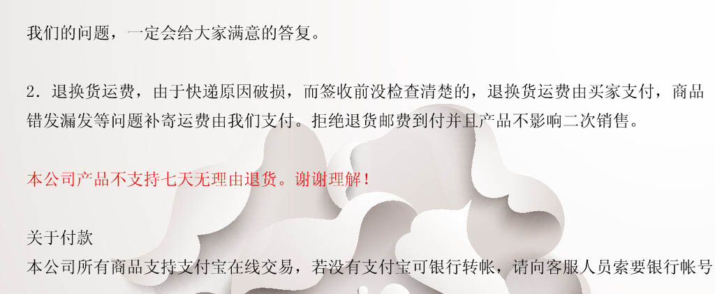 關於發貨 本公司不支持七天無理由退貨,敬請諒解