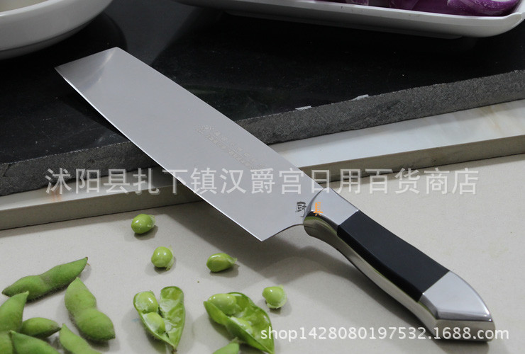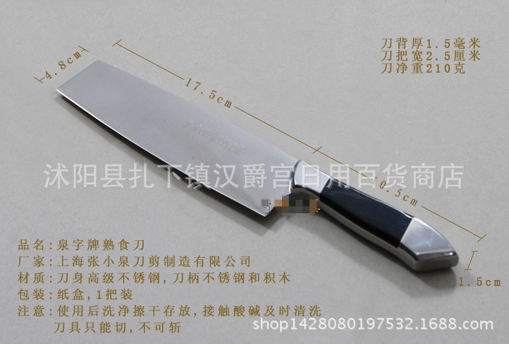 店傢分析:該款刀刃口鋒利,手柄是防滑設計的橡塑膠柄,經久耐用,是居傢的好幫手。因該款刀鋒利無比,切勿讓幼兒玩耍把弄。