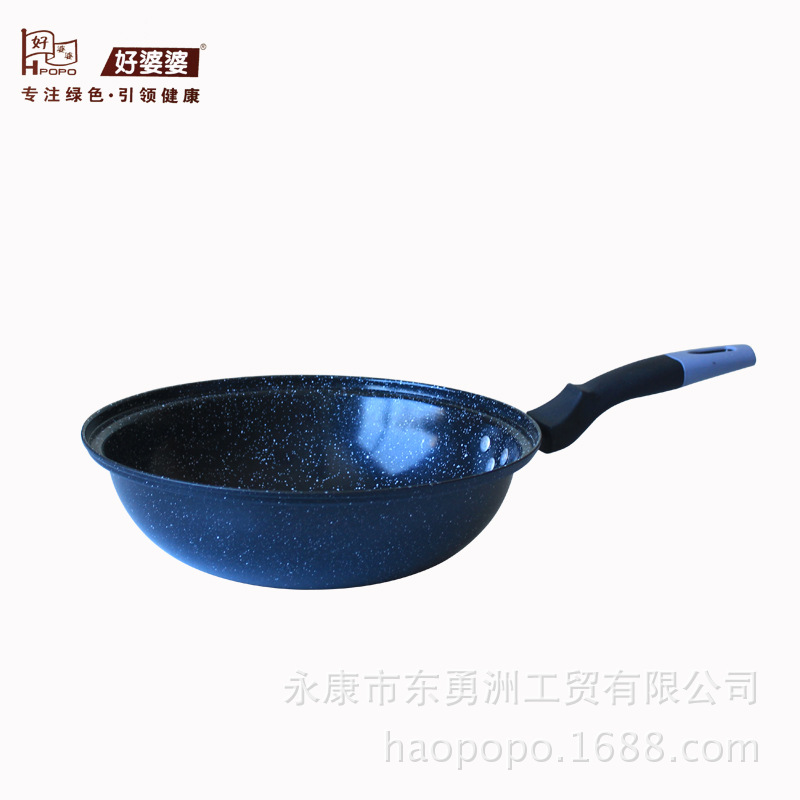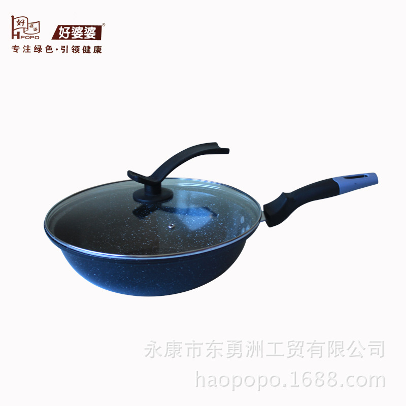 好婆婆炒鍋 麥飯石炒鍋不粘鍋 無油煙平底不沾鍋 廚房鍋具批發