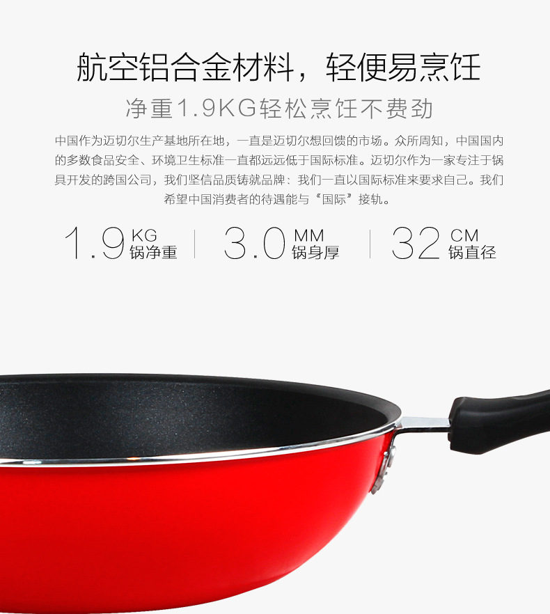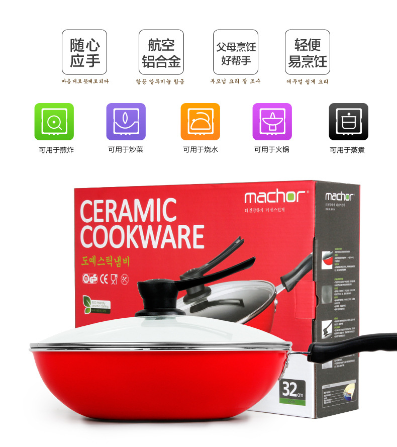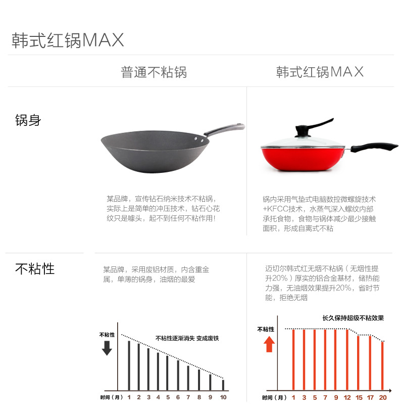 韓國邁切爾炒鍋不粘鍋 鋁合金平底鍋 無油煙炒鍋 電磁爐通用