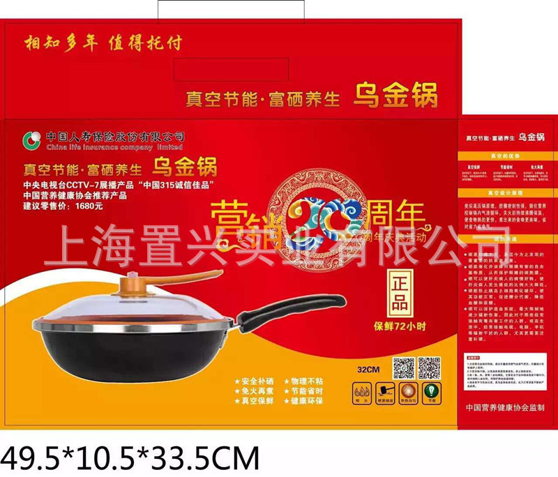 新款真空烏金鍋,中國人壽保險專版烏金鍋32cm,一件6個,整箱發貨。