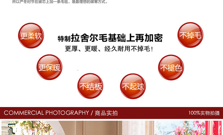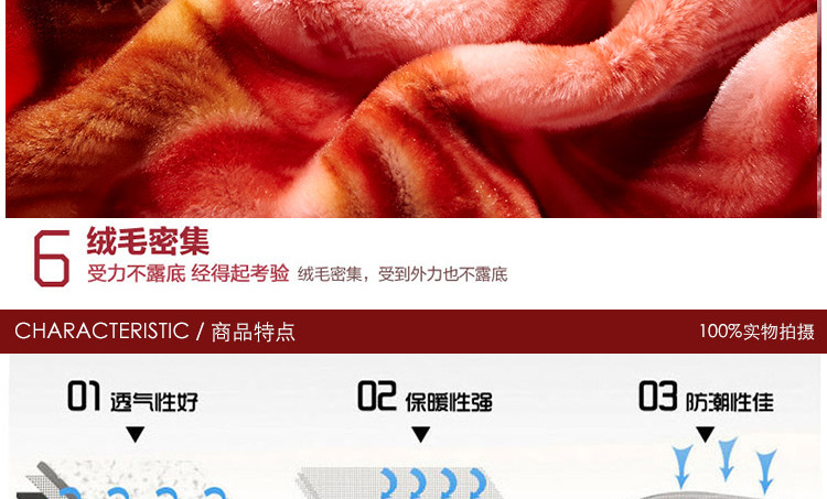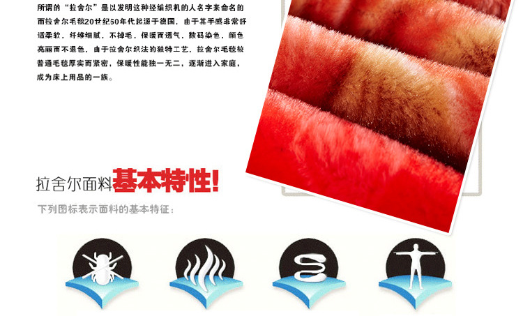 商品麵料/重量 | 拉舍爾毛毯/6.6斤,誤差不超過0.3斤左右 |