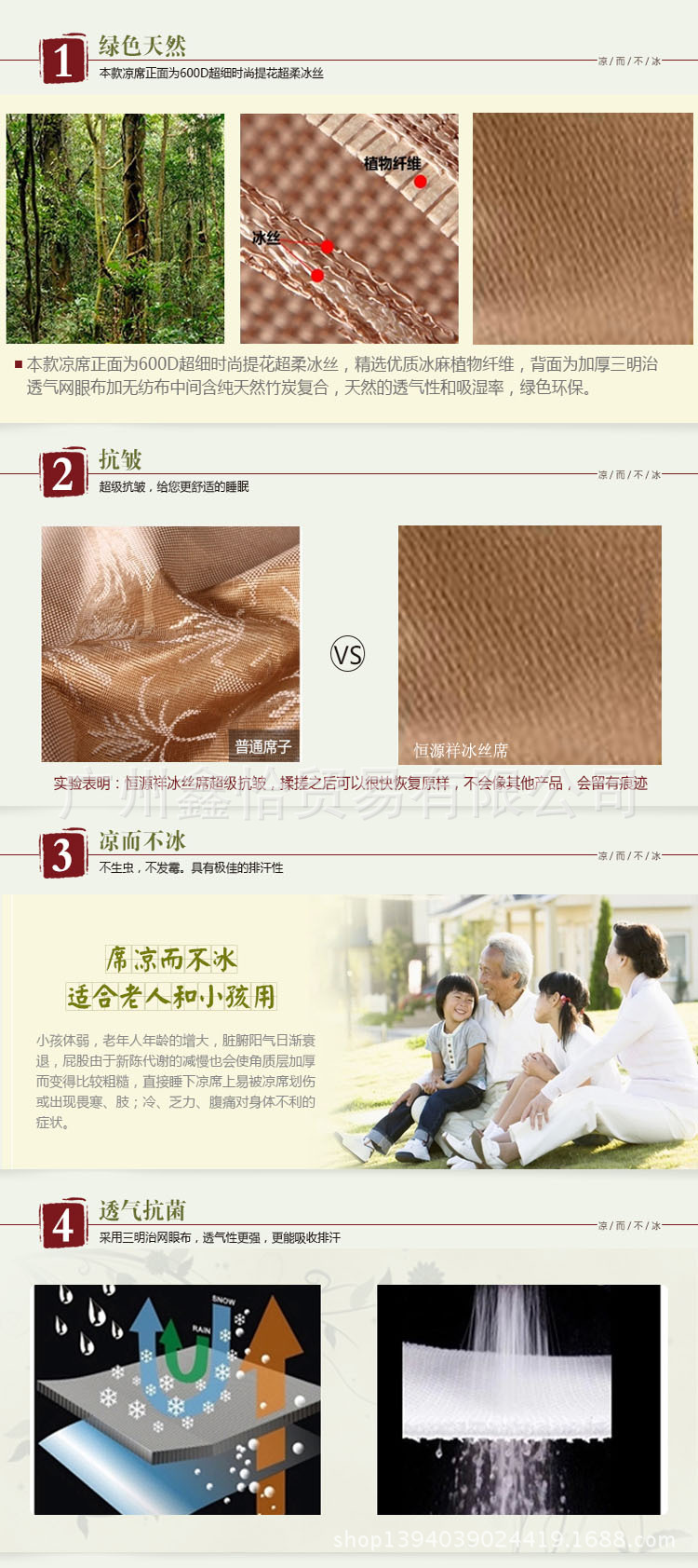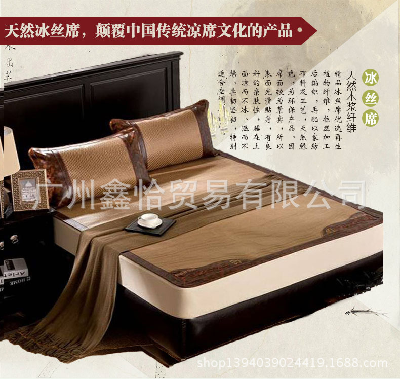 冰絲席是用純手工木漿纖維結合冰絲,天然環保,涼而不冰,柔堅