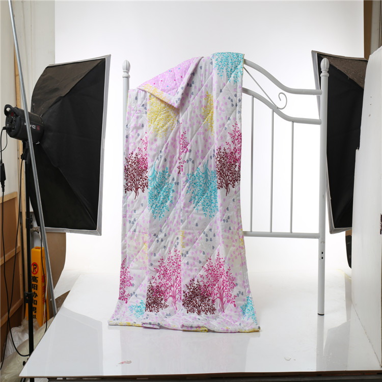 - 本款產品采用優質100%精梳棉為原料。全棉印花夏被采用高支高密斜紋麵料精製而成,背麵使用時尚有趣的印花麵料,並且高精度的專業電腦絎縫設備製作,保持瞭被芯的整體美觀效果,有良好的透氣性,被子更輕更柔,更舒適。