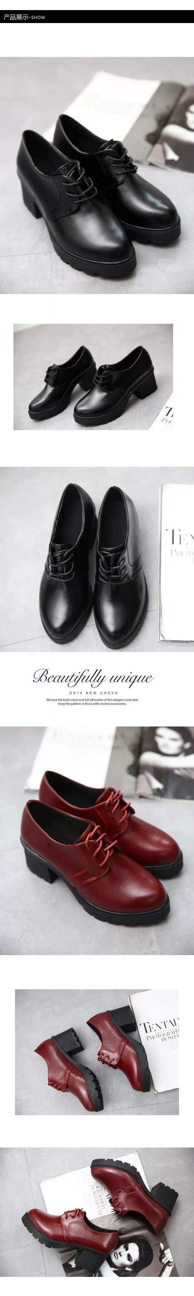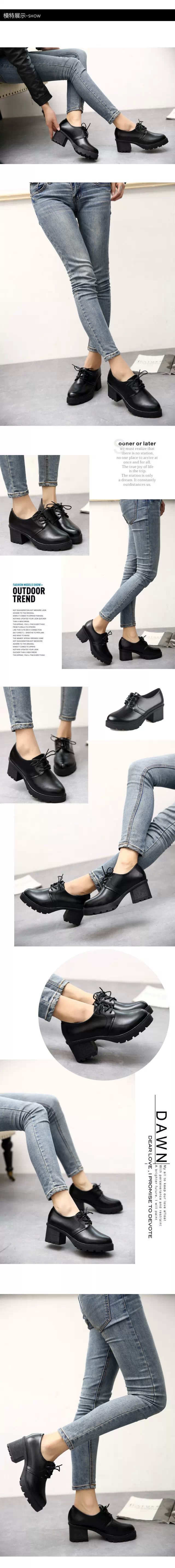 韓版粗跟英倫女學生小皮鞋爆款女鞋低幫PU皮中跟秋款單鞋代理批