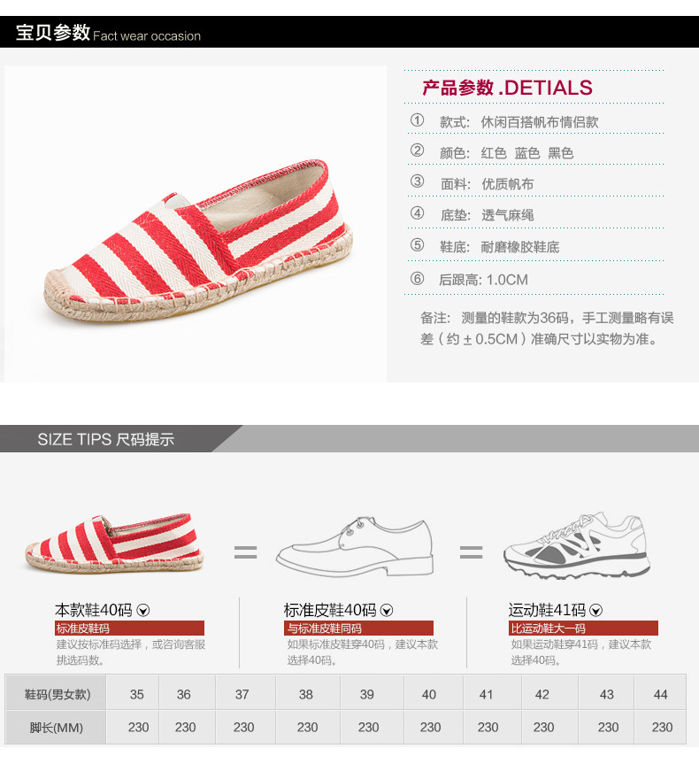 麻底鞋子下雨不可以穿,占水走路會導致鞋子變形.都是標準碼,請親們按平時穿的標準碼購買,尺碼都是按統一標準做的,不是以個某人的腳而做,