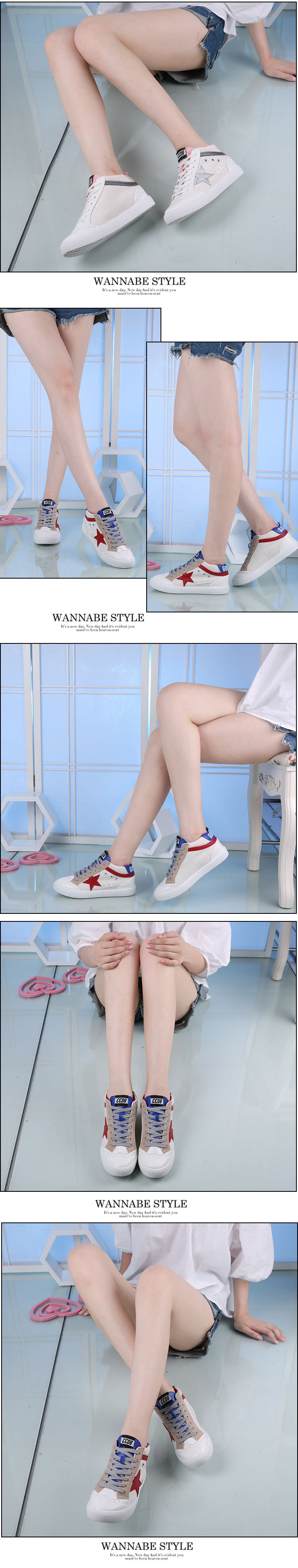 2016韓版新款五角星系帶板鞋厚底高幫休閒女鞋透氣運動鞋女小白鞋