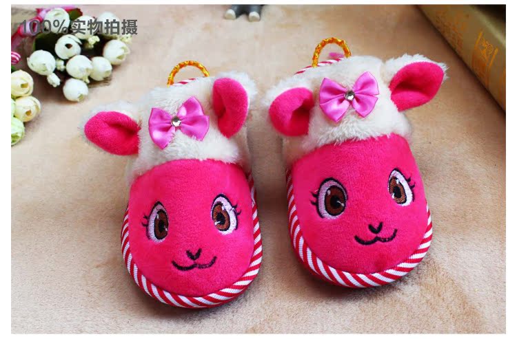 秋冬季節兒童卡通長毛絨加厚新款兔子卡通兒童棉拖鞋廠傢一件代發 |