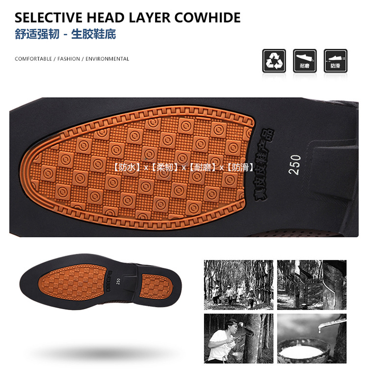 - 優質頭層牛皮打造柔軟質地,富有質感的麵料方顯男性品味,穿著舒適,天然舒適橡膠鞋底,【高檔精致包裝】集商務休閒於好皮鞋,尊貴有品。 【100%頭層牛皮】 【商務休閒】儒雅英倫風范,年度經典熱賣款【萬人好評】成功男士鞋櫃必備款!