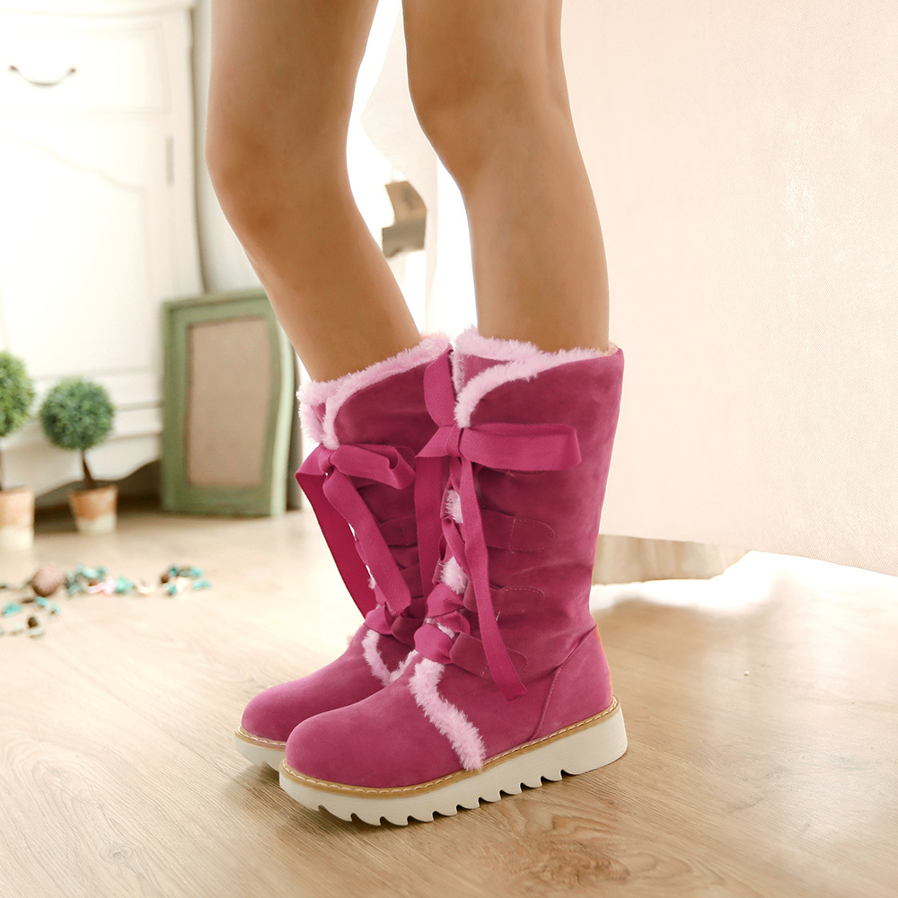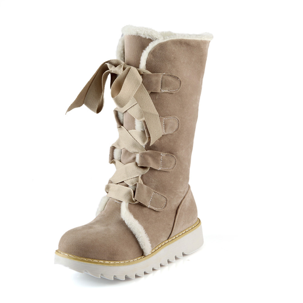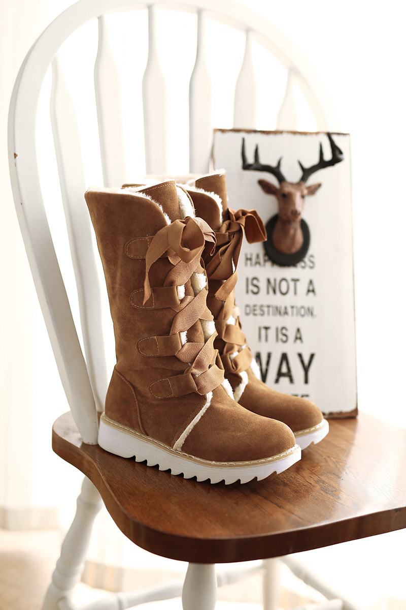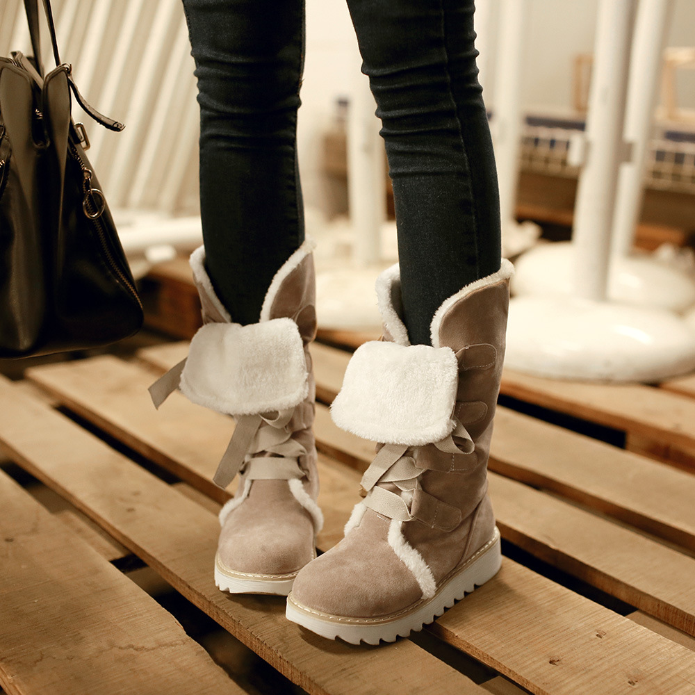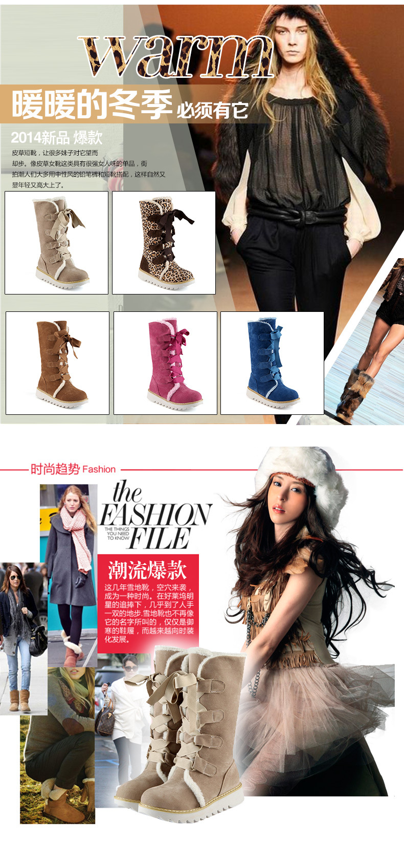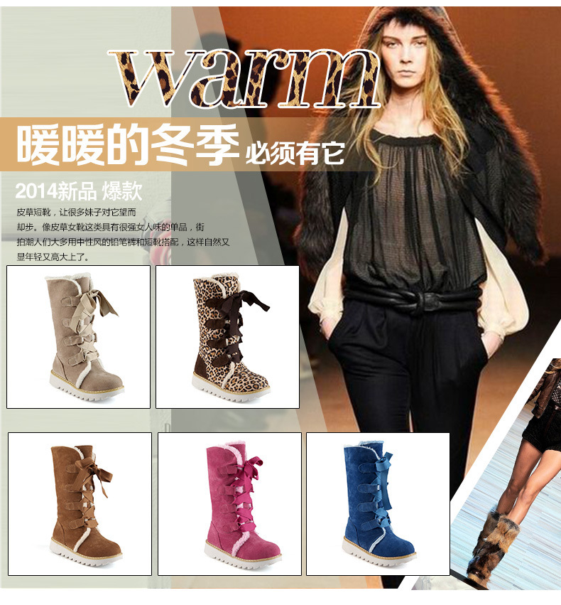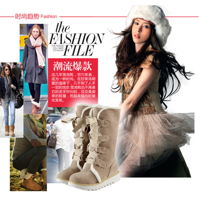 流行元素:2014新款綁帶平底雪底毛毛鞋 學生鞋 時尚美女大愛 翻皮 綁帶 裸靴 雪靴 女靴