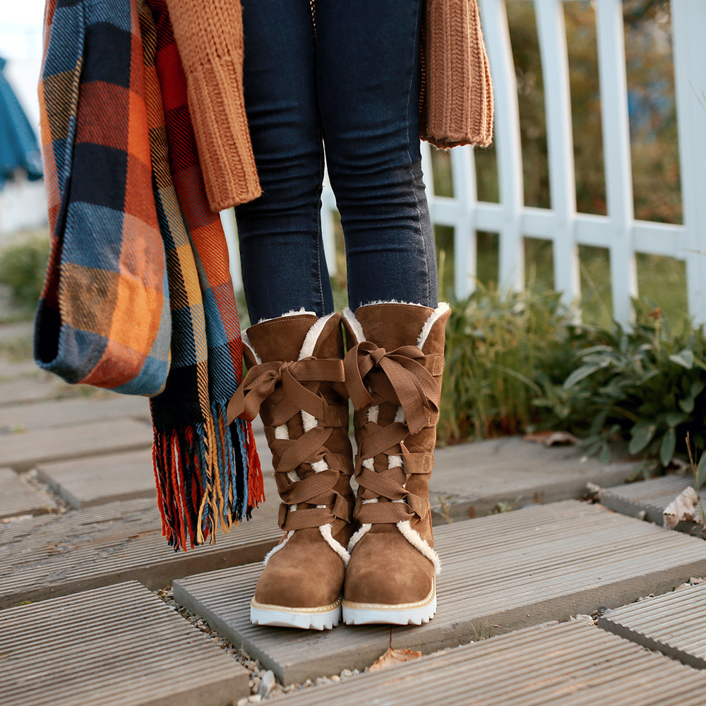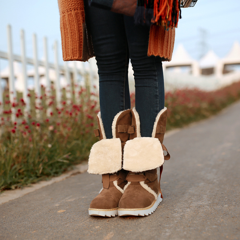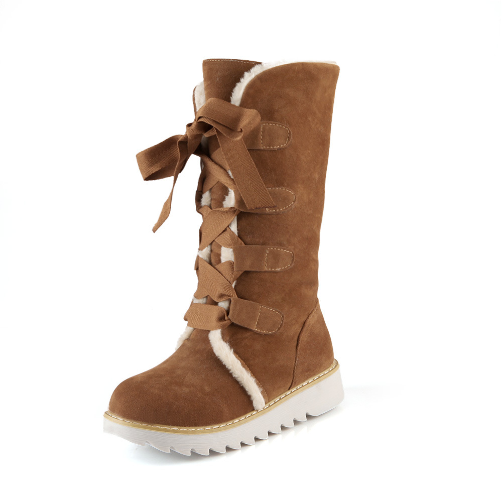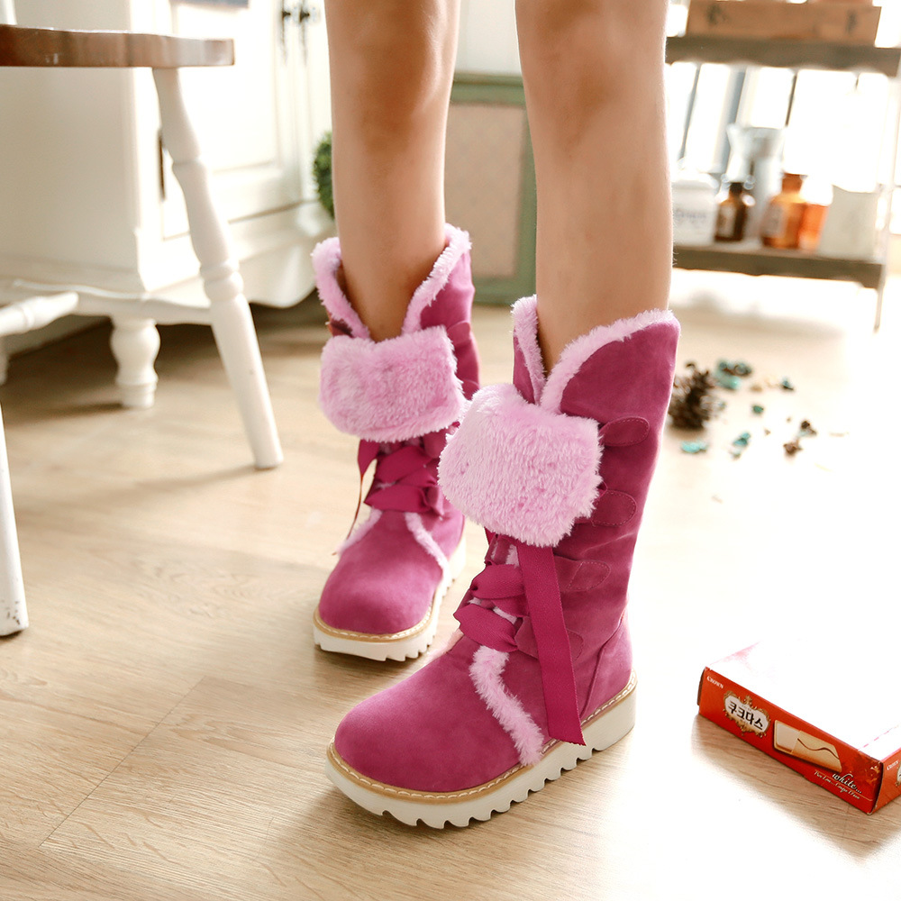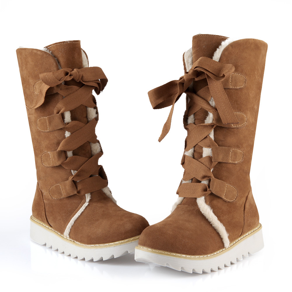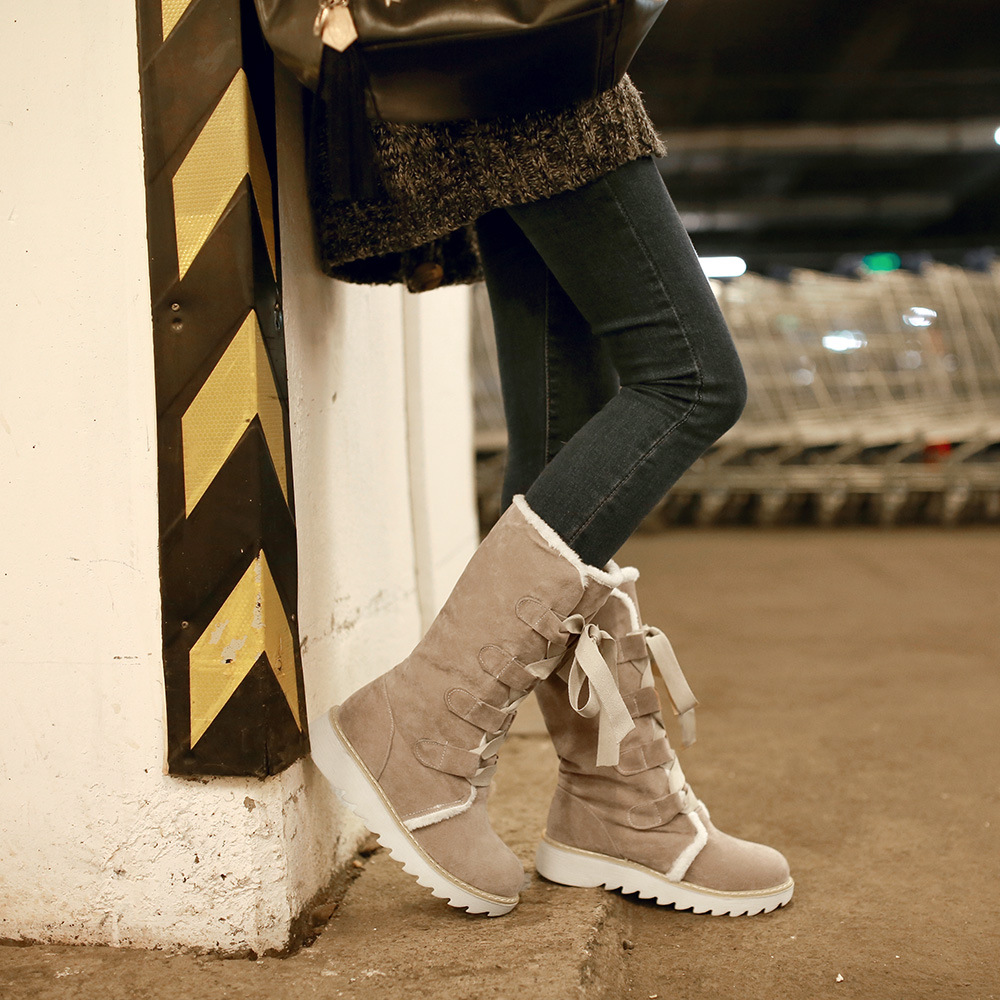 流行元素:2014新款綁帶平底雪底毛毛鞋 學生鞋 時尚美女大愛 翻皮 綁帶 裸靴 雪靴 女靴