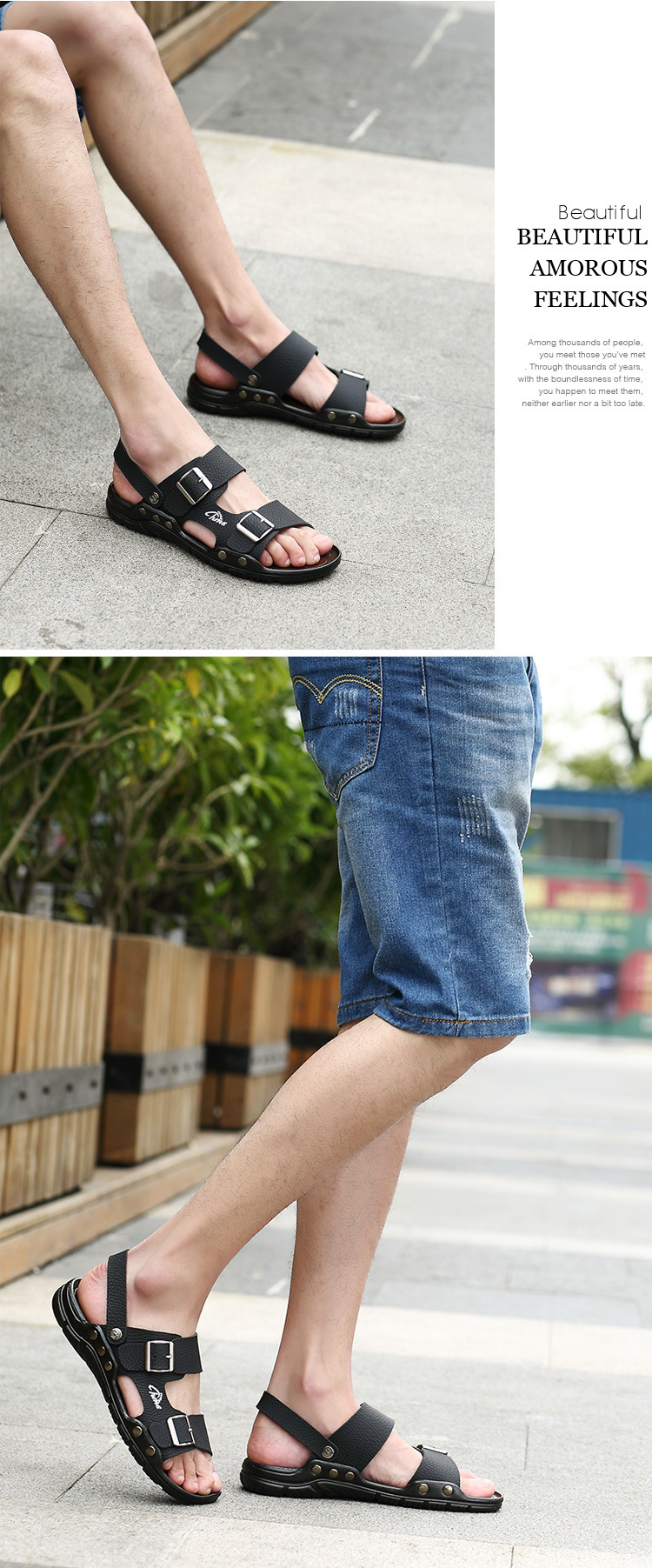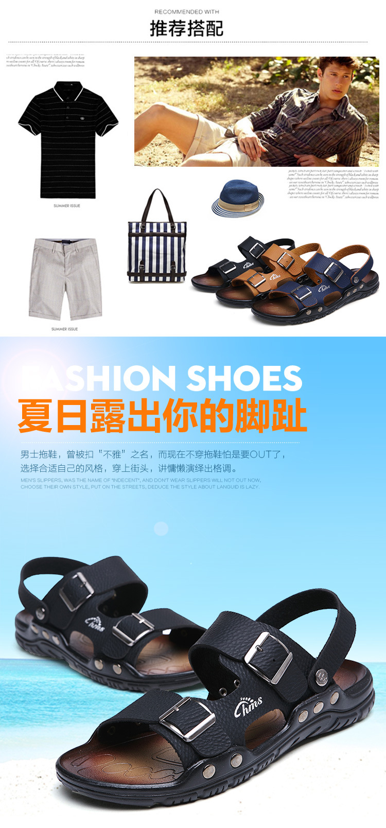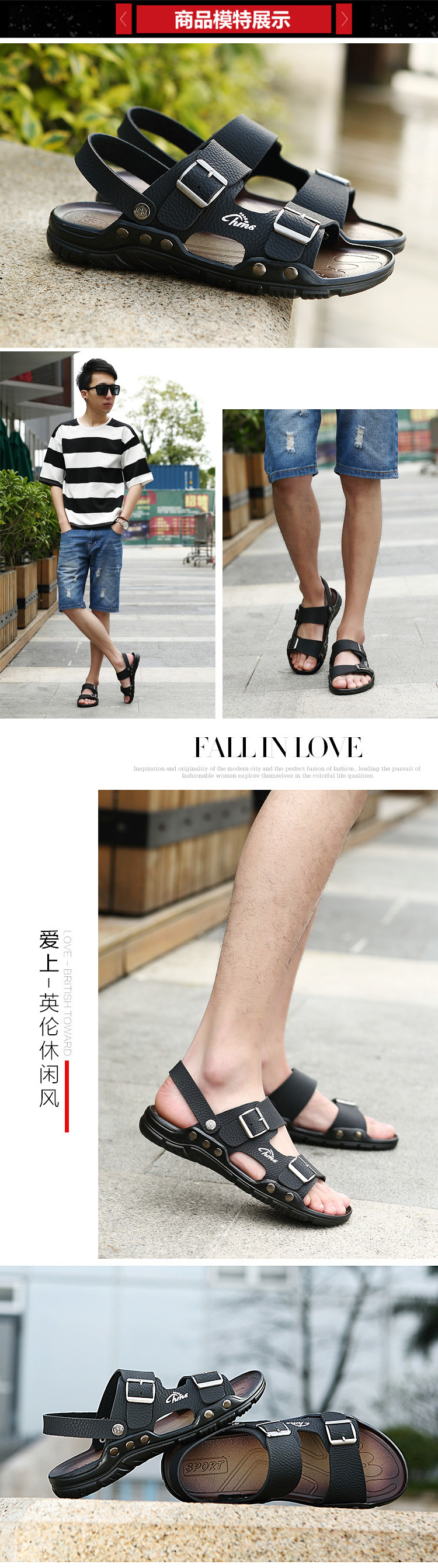 2016新品夏季涼鞋男士沙灘鞋男鞋優質二層牛皮休閒涼拖鞋一件代發