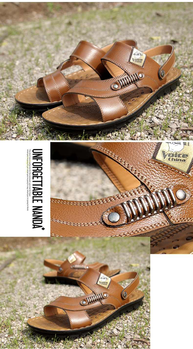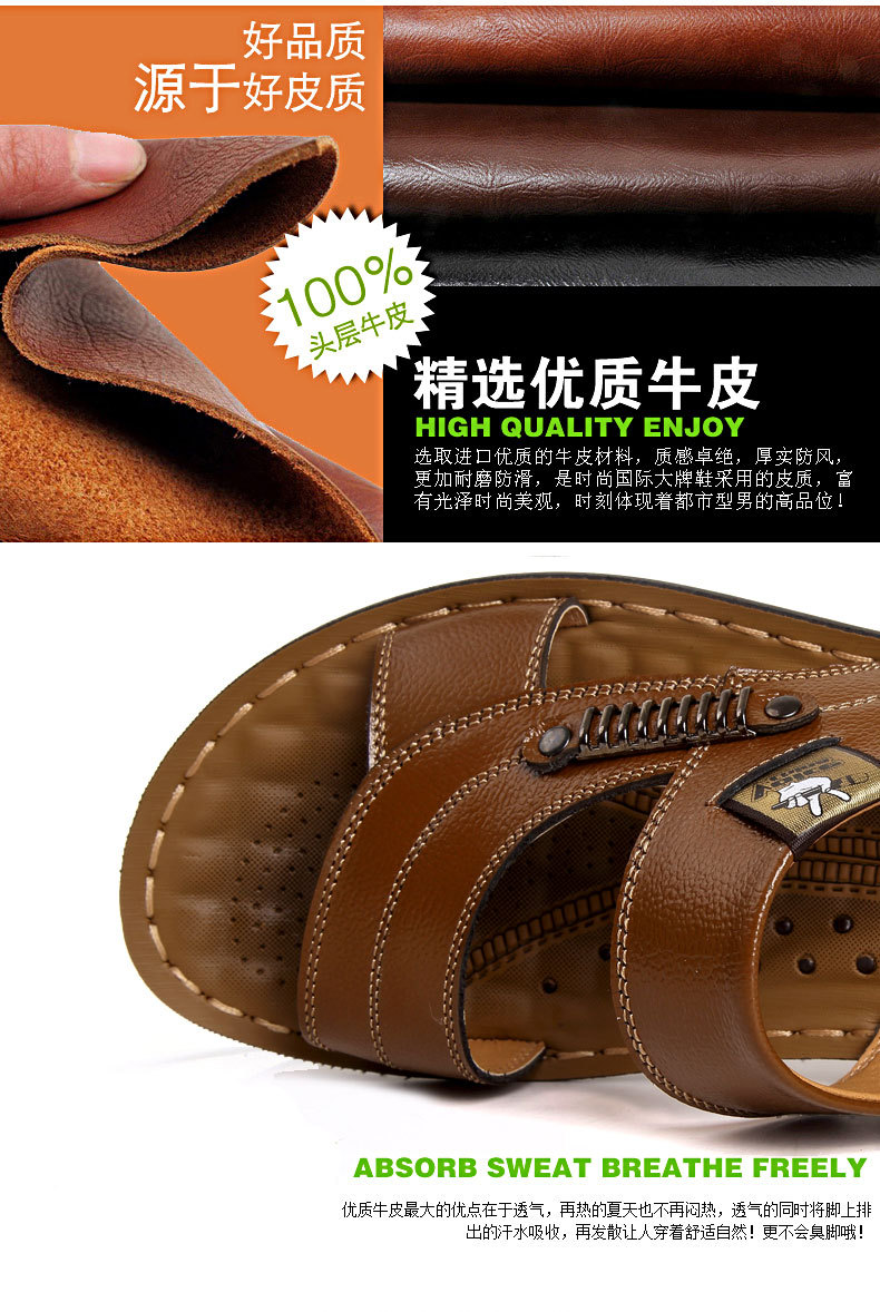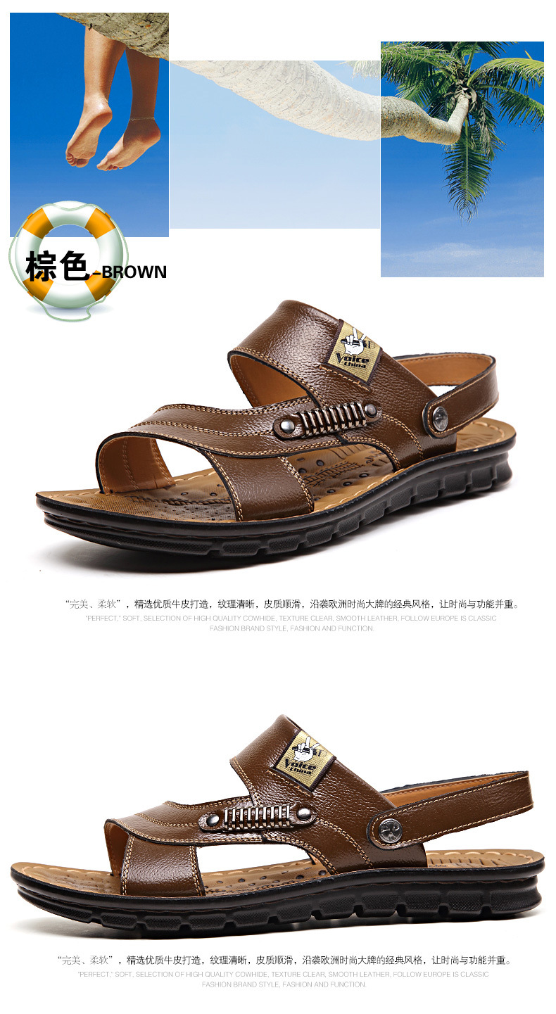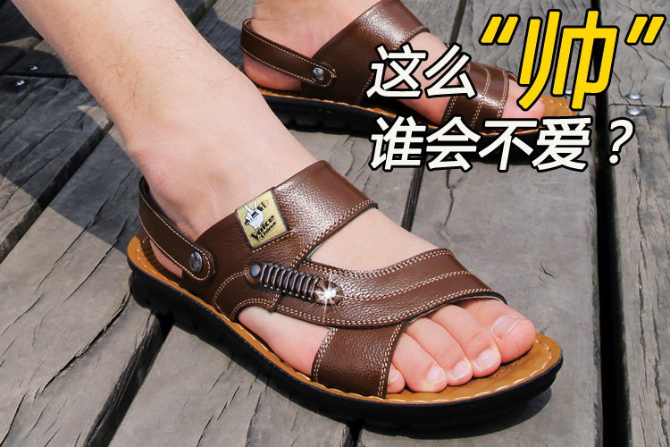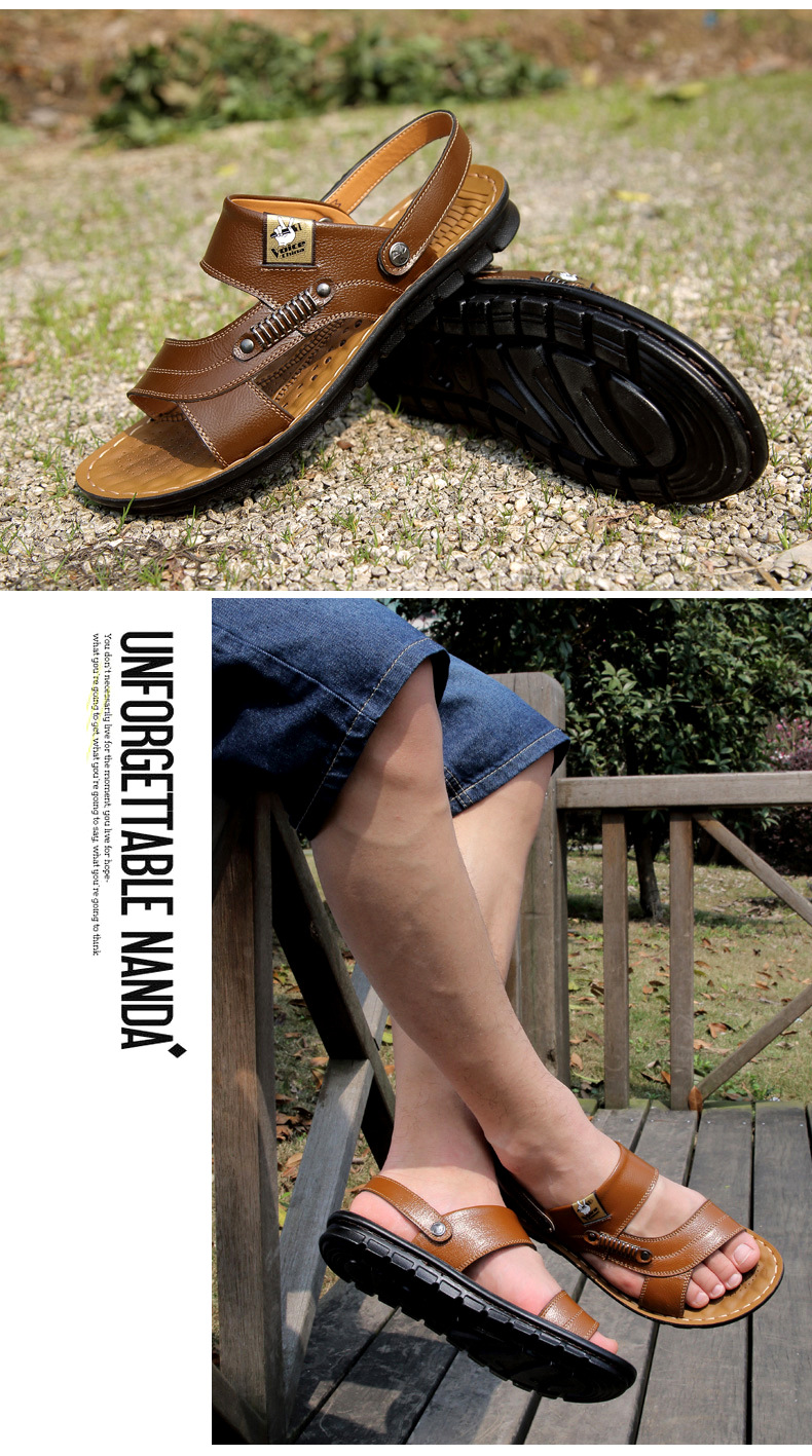 男士真皮休閒涼鞋軟底防滑沙灘鞋夏季牛皮中年男涼鞋