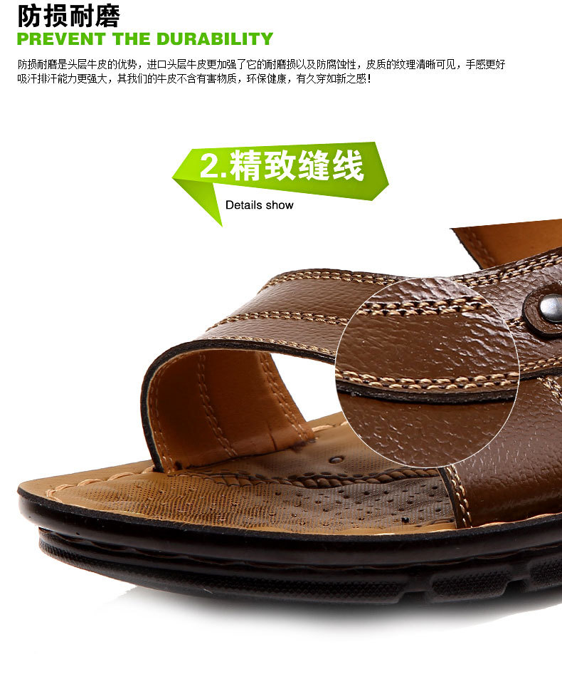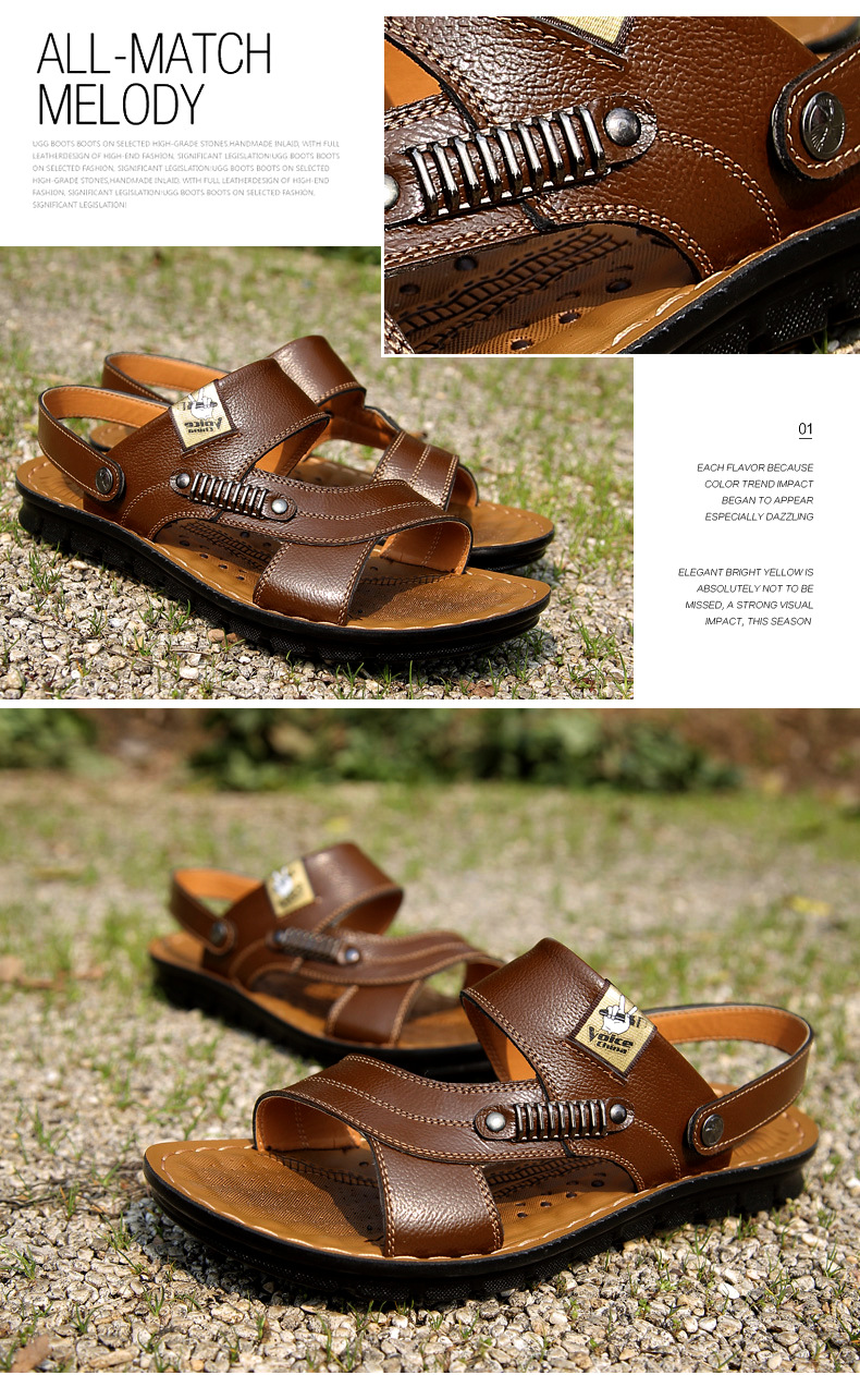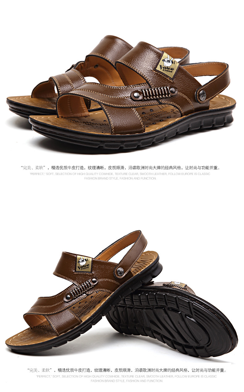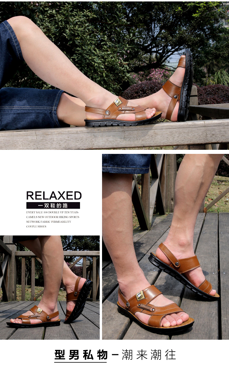 男士真皮休閒涼鞋軟底防滑沙灘鞋夏季牛皮中年男涼鞋
