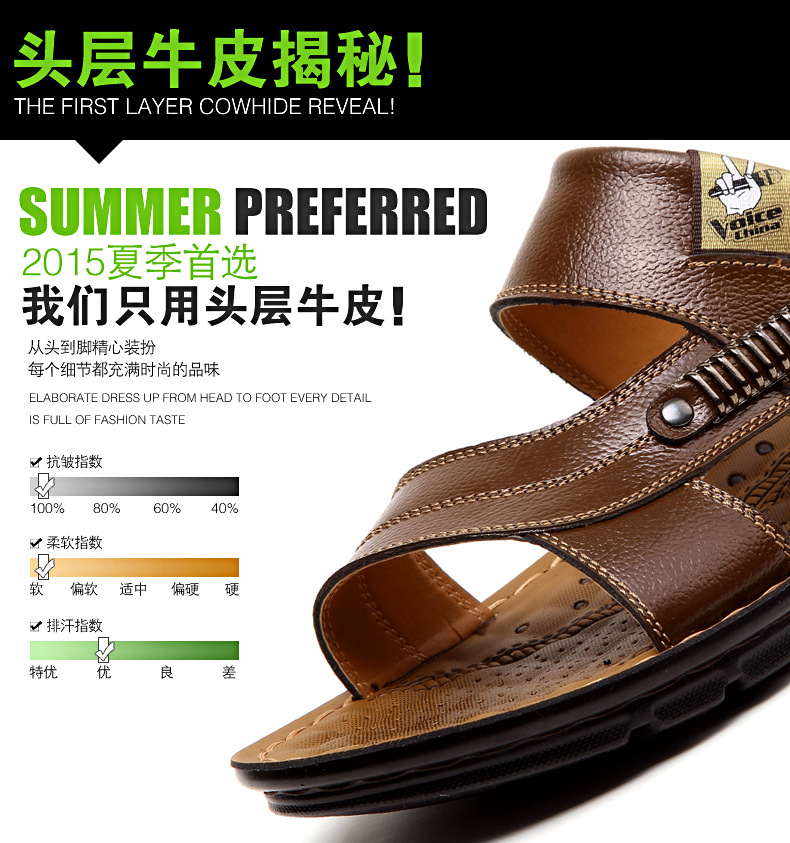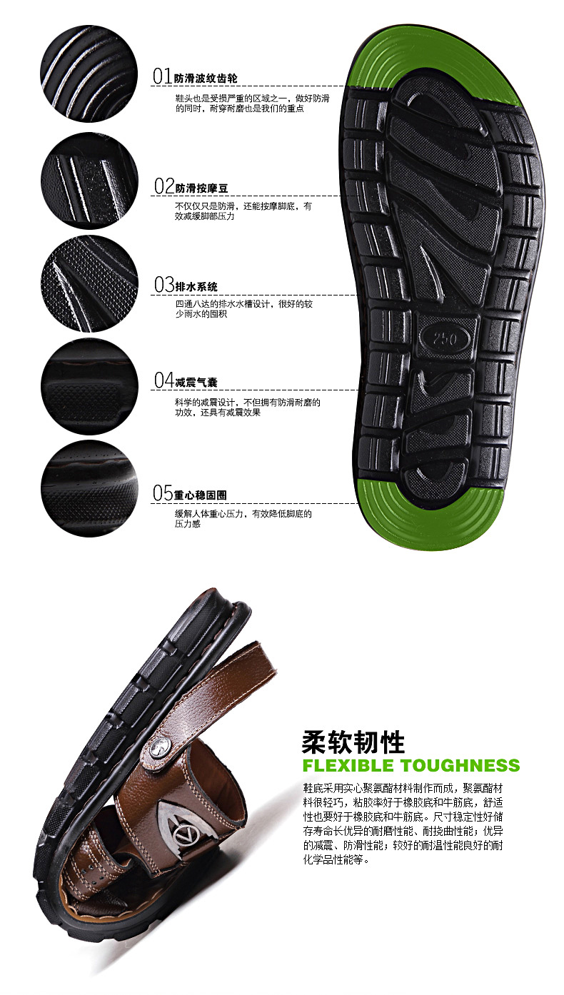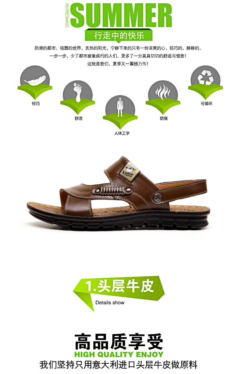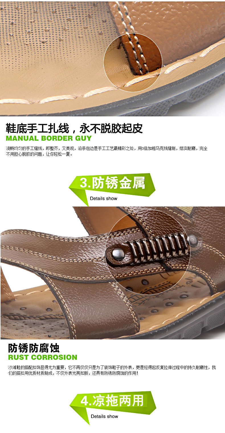 男士真皮休閒涼鞋軟底防滑沙灘鞋夏季牛皮中年男涼鞋