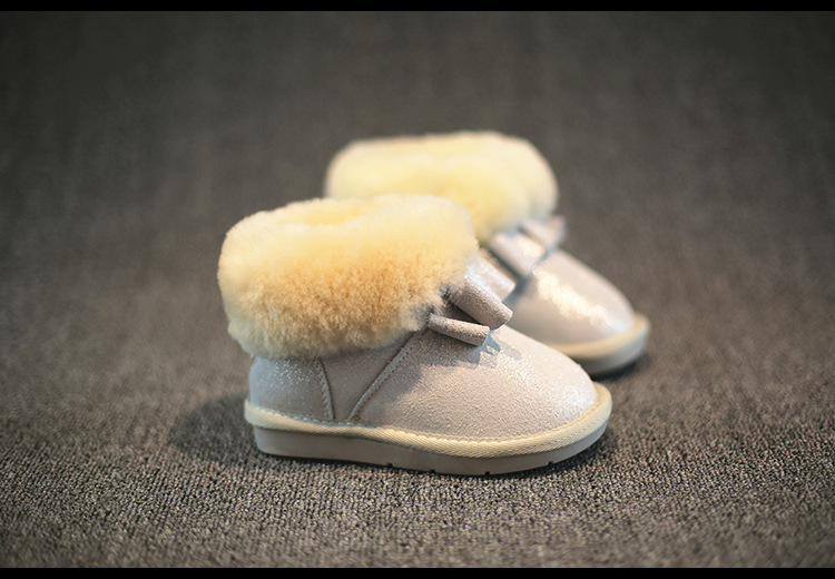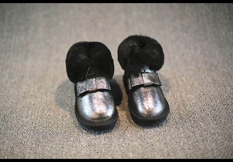 T5981-8冬季新品女童鞋亮皮翻毛蝴蝶結保暖雪靴批發一件代發