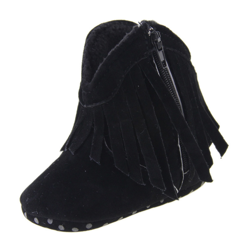 工廠直銷外貿原單黑色絨麵保暖軟底防滑嬰兒靴子 學步靴 hs362