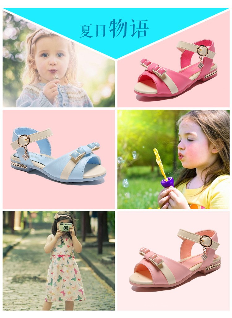 夏季品牌女童蝴蝶結涼鞋