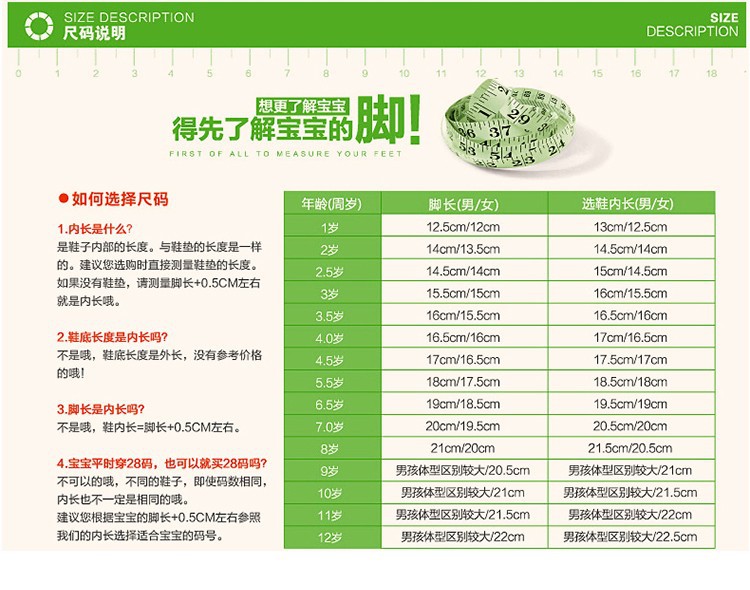 尺碼 :腳長+1CM=內長,請按內長選購哦!27碼內長16.6,28碼/17.3cm,29碼/18cm,30碼/18.7cm,31碼/19.3cm,32碼/19.8cm,33碼/20.4cm,34碼/21.3cm,35碼/21.9cm,36碼/22.6cm,37碼/23.3cm,