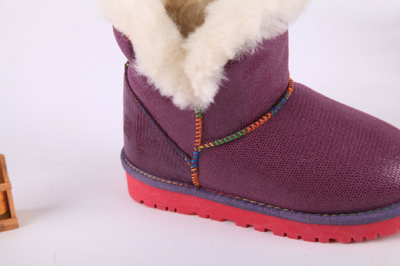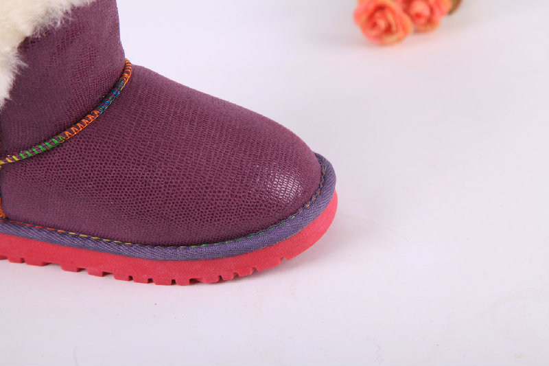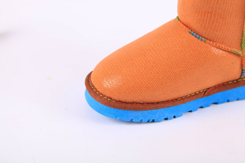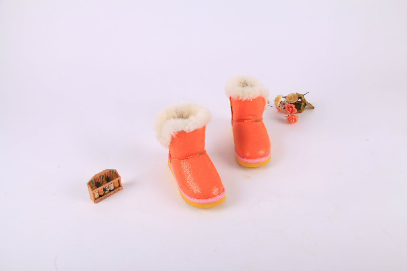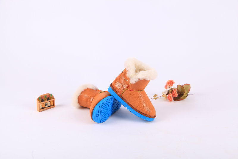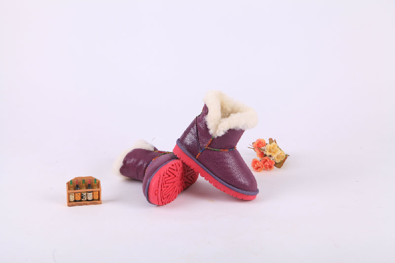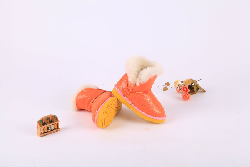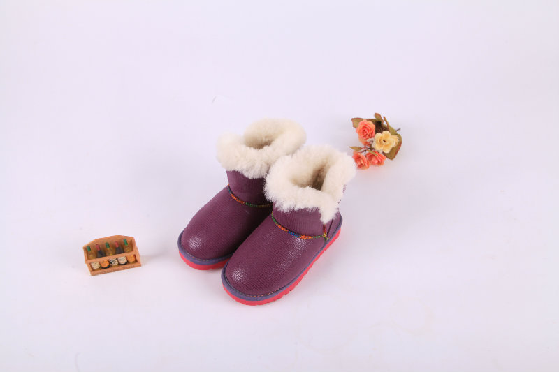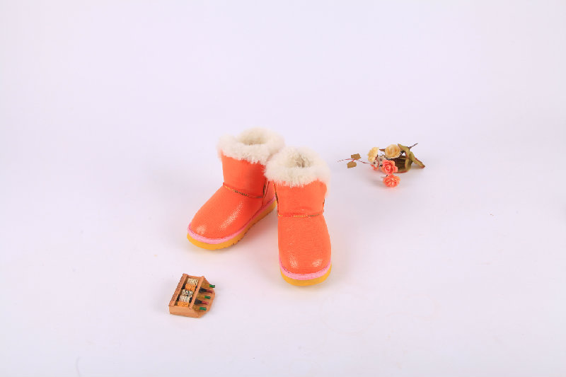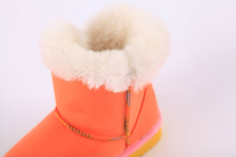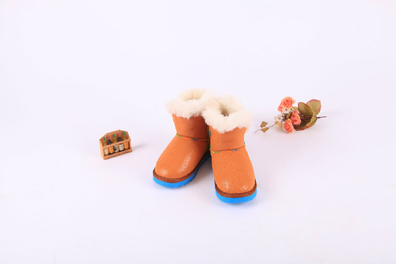 廠供高檔亮麵紋路小牛皮毛一體兒童靴 男女款時尚新款冬季保暖