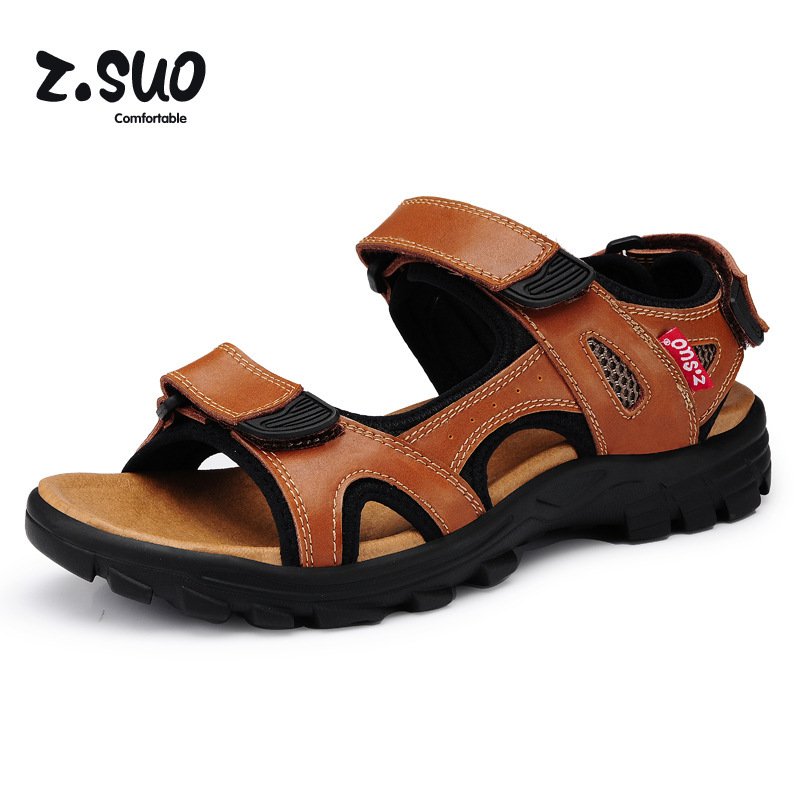 走索夏季男款男士透氣涼鞋真皮涼拖休閒沙灘鞋男ZS0163 特價熱銷