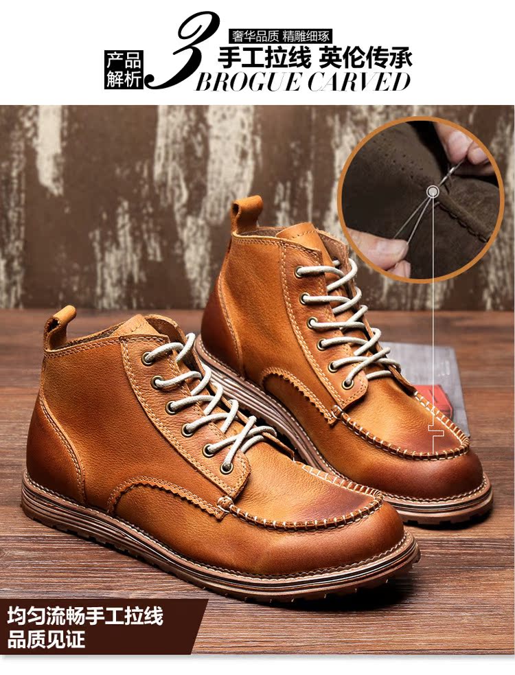 秋冬英倫男靴短靴批發真皮圓頭高幫純色馬丁靴平底系帶工裝靴男鞋