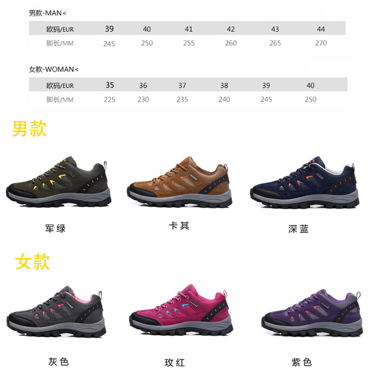 批發秋冬新款登山鞋女戶外旅遊鞋情侶徒步男士鞋防滑真皮越野跑鞋