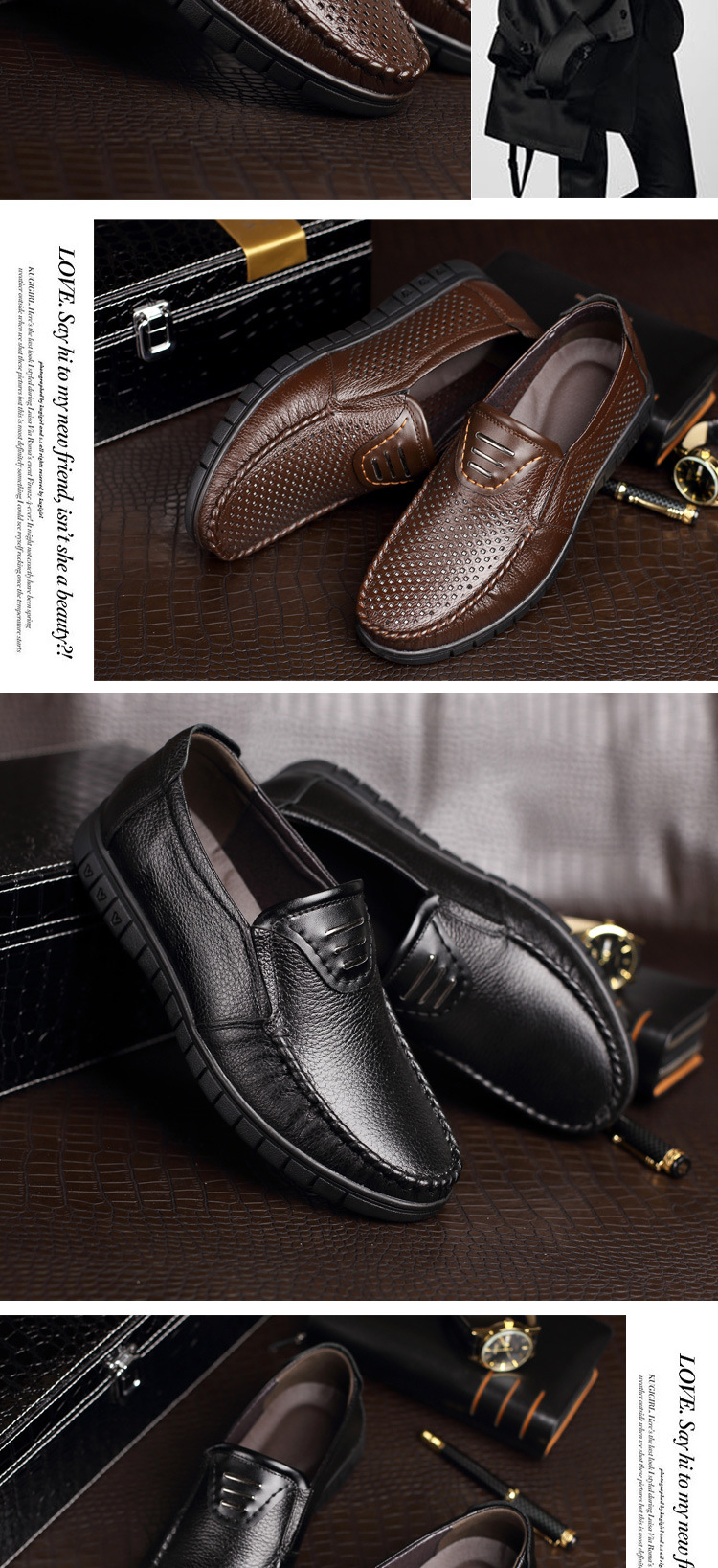 - 優質頭層牛皮打造柔軟質地,富有質感的麵料方顯男性品味,穿著舒適,天然舒適橡膠鞋底,【高檔精致包裝】集商務休閒於好皮鞋,尊貴有品。 【100%頭層牛皮】 【商務休閒】儒雅英倫風范,年度經典熱賣款【萬人好評】成功男士鞋櫃必備款!