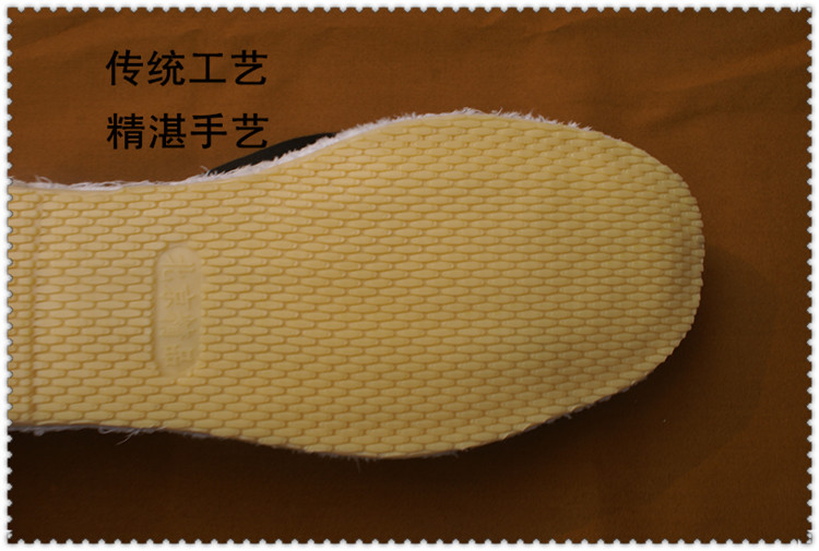 采用高檔的禮服呢麵料,手感細膩;純手工製作的精品千層底鞋底,比普通千層底更厚實、更舒適!粘貼膠片後,增加瞭防滑、耐磨的功能。此款是老北京佈鞋的上乘之作。
