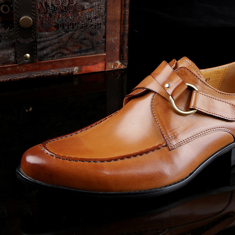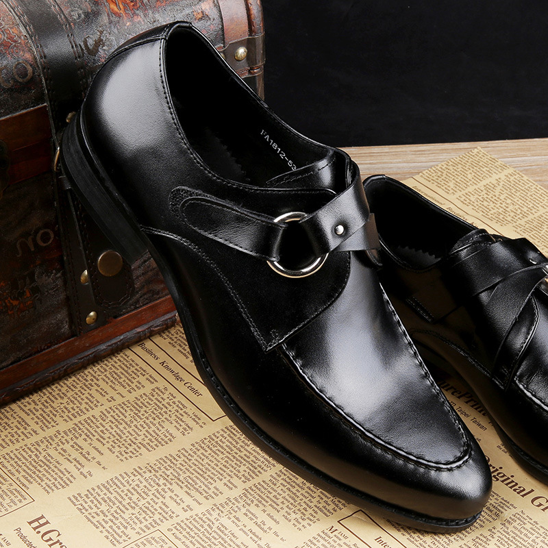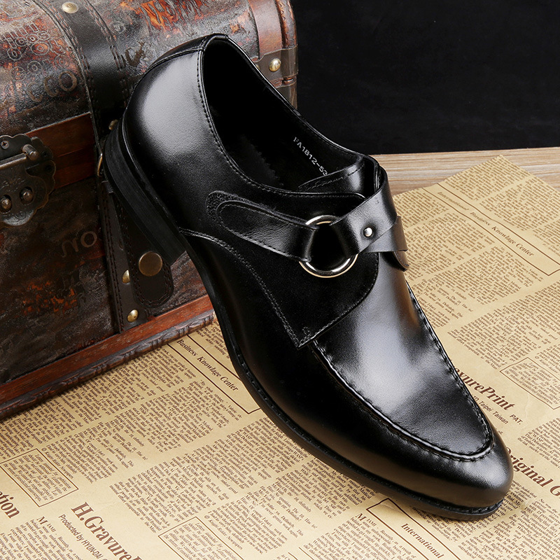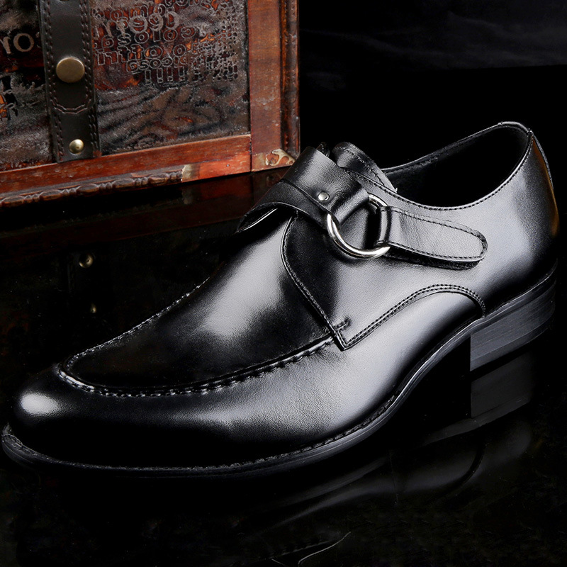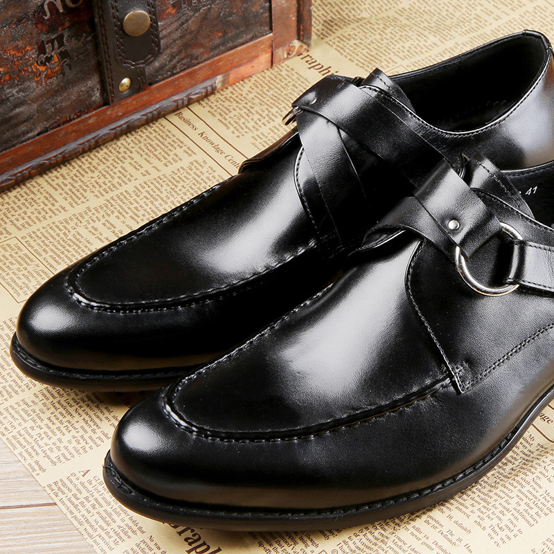 潮流皮鞋男搭扣真皮單鞋正裝工作穿高檔婚鞋商務大塊牛皮打造37碼