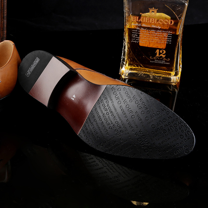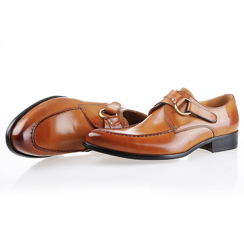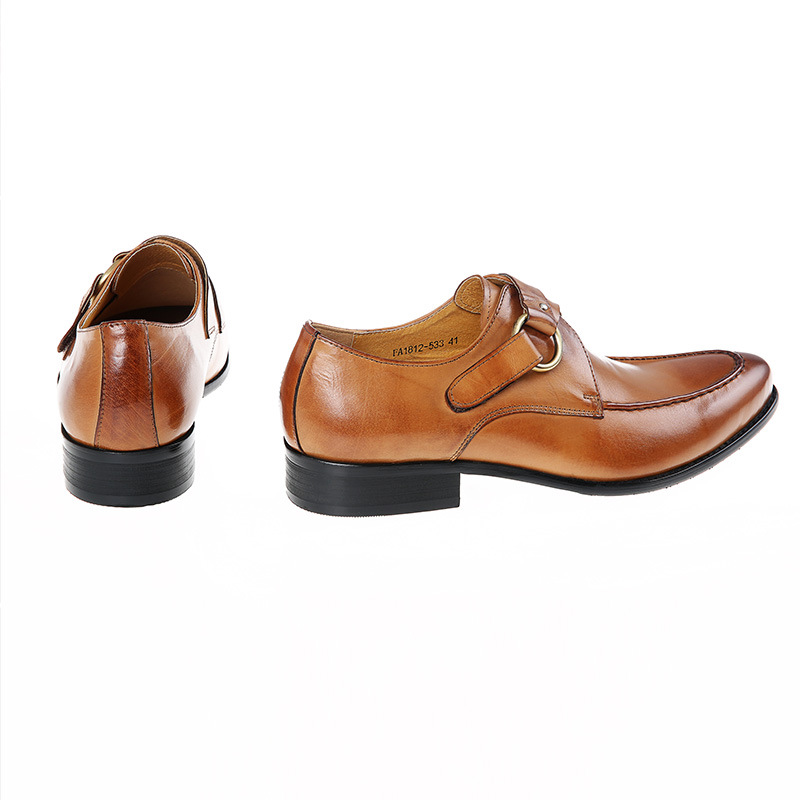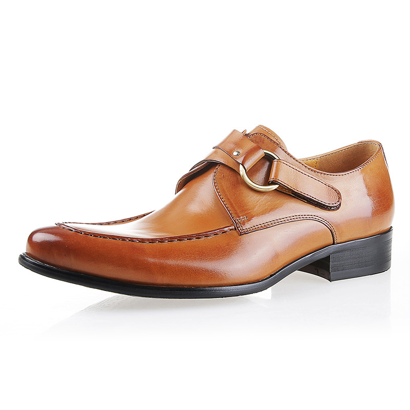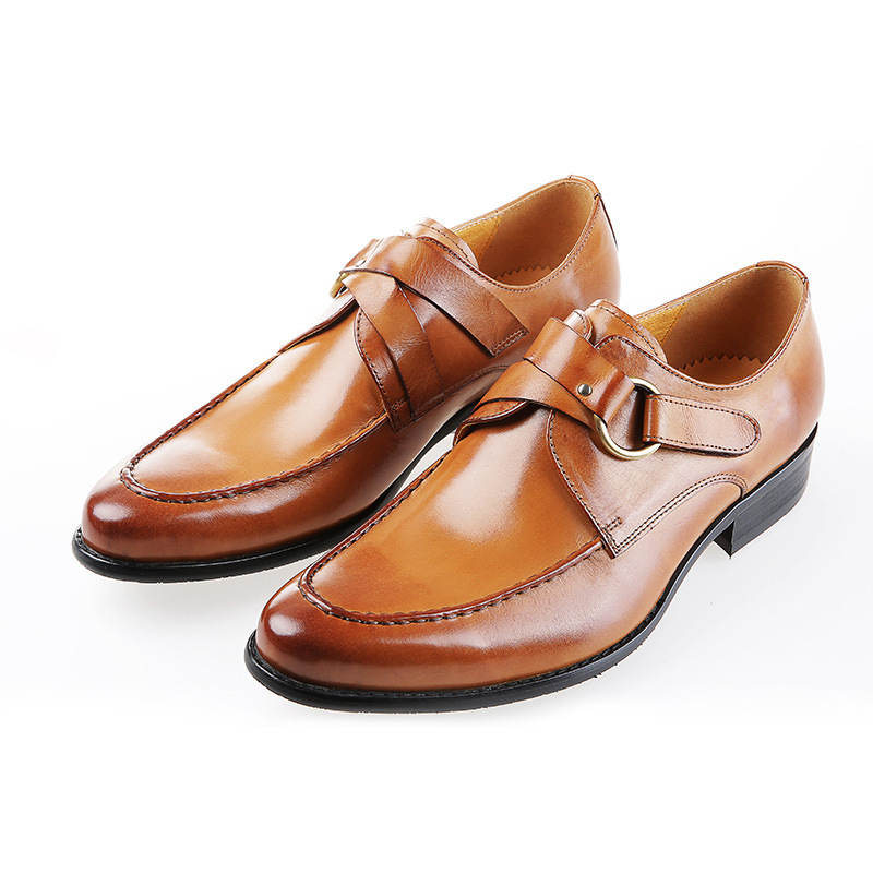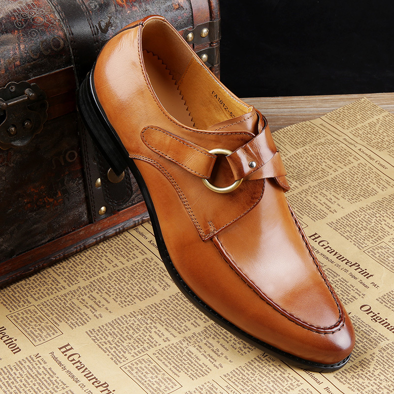 潮流皮鞋男搭扣真皮單鞋正裝工作穿高檔婚鞋商務大塊牛皮打造37碼