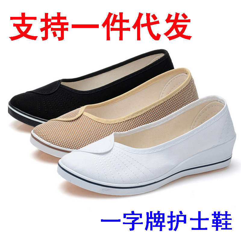 特價一字牌護士鞋 白色佈鞋坡跟女單鞋美容院護士舞蹈工作鞋批發