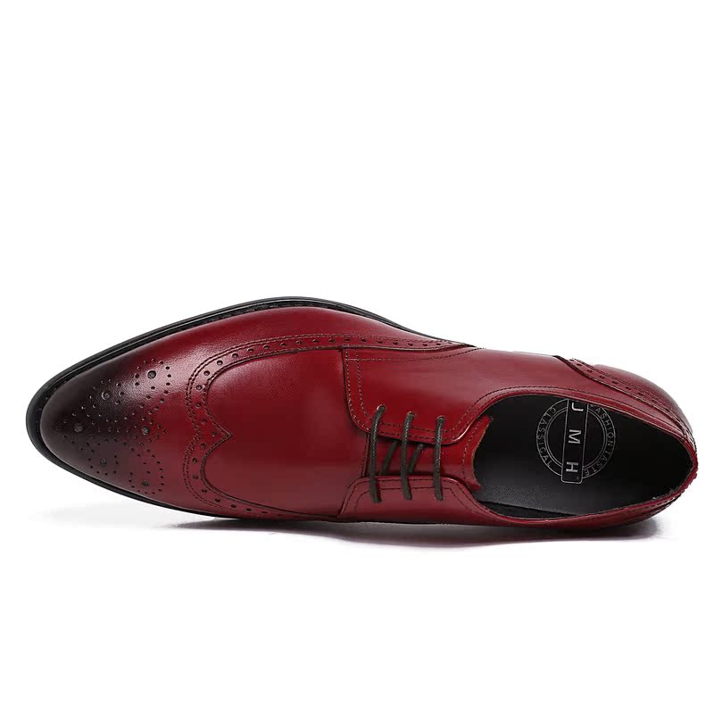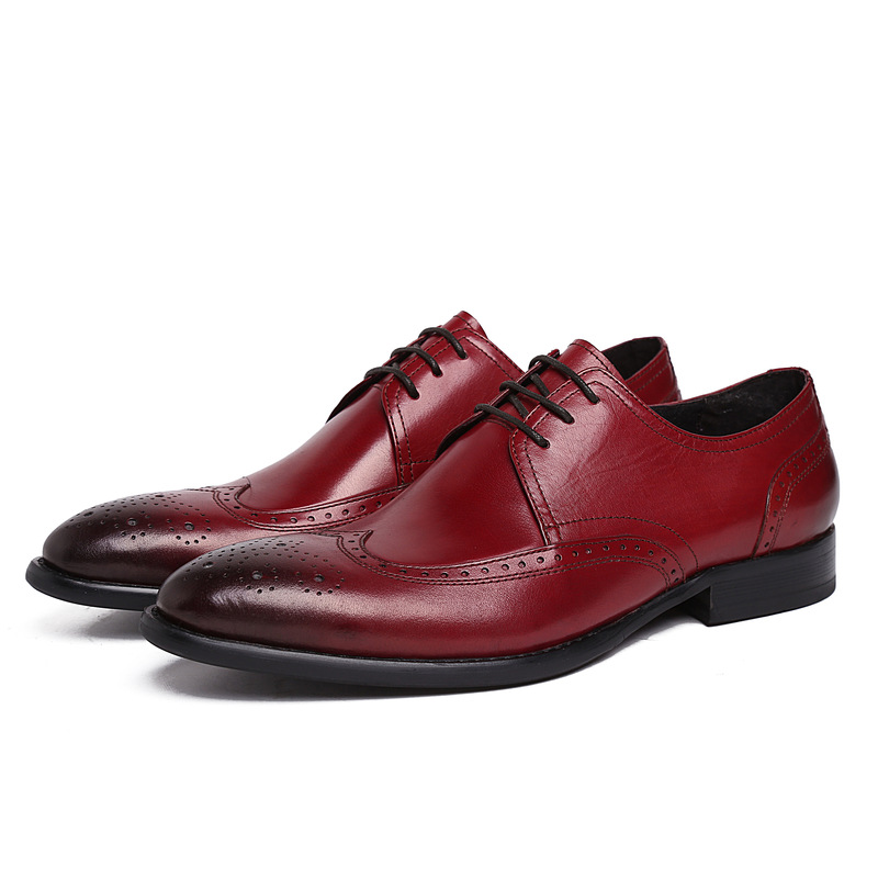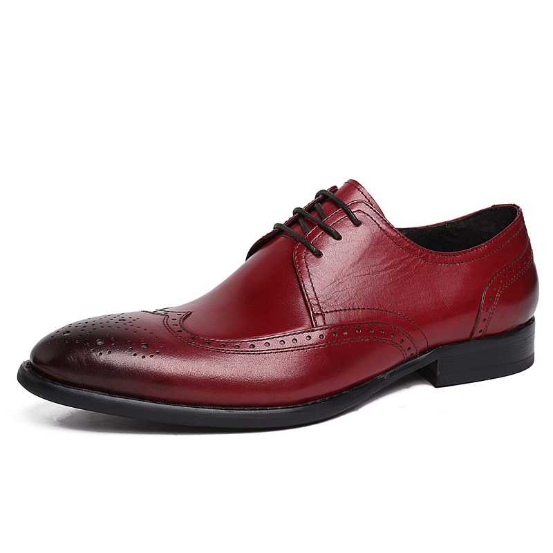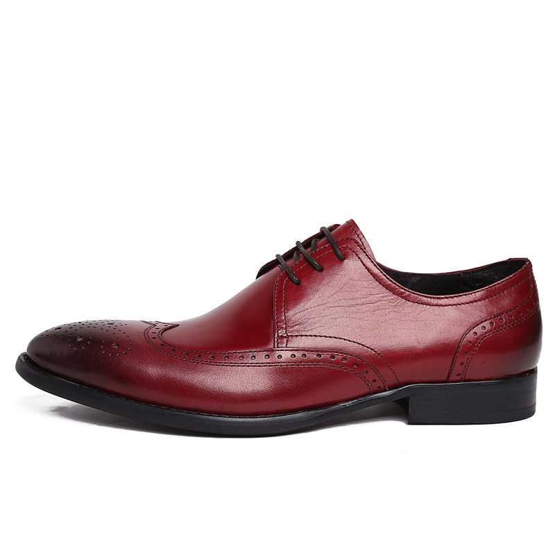 新款男士皮鞋歐美版雕刻花頭純皮男鞋商務上班穿高檔婚鞋大氣