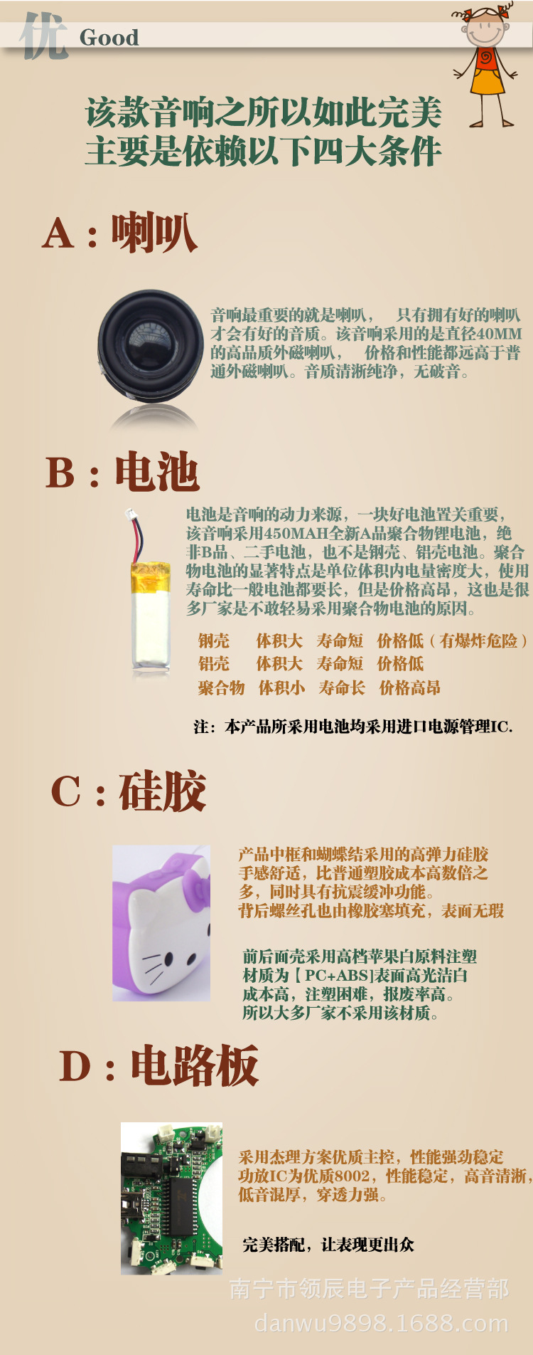 本產品是一款多功能的音樂播放音響,可支持各種音樂存儲器,為廣大音樂愛好者提供瞭極大的方便。
