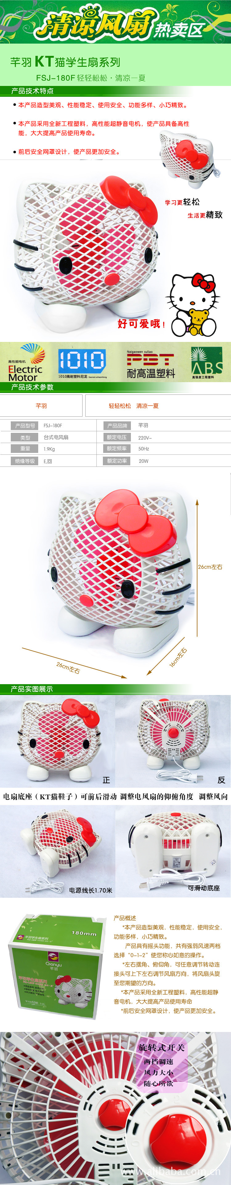芊羽牌Hello kitty臺扇工作時靜音特別是裝可愛型的美外觀設計,采用時尚卡通形,滿足您的流行需求