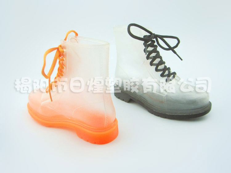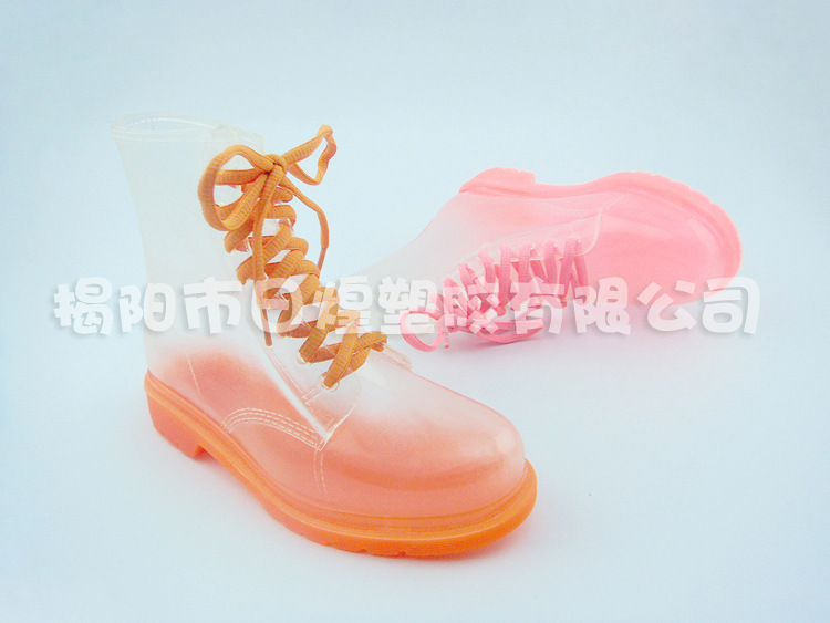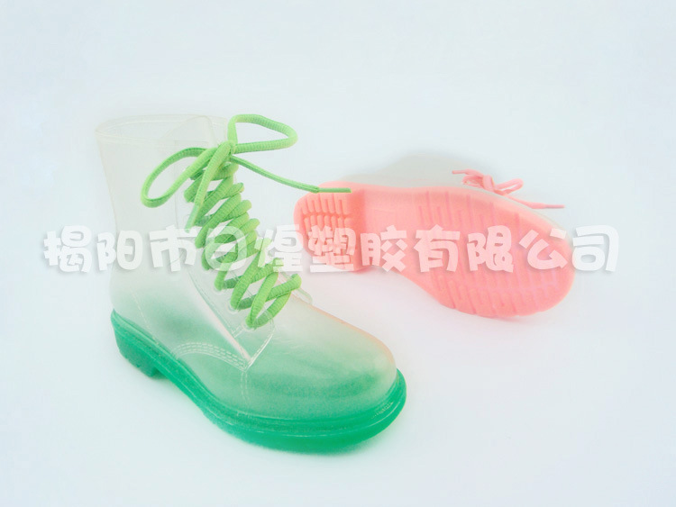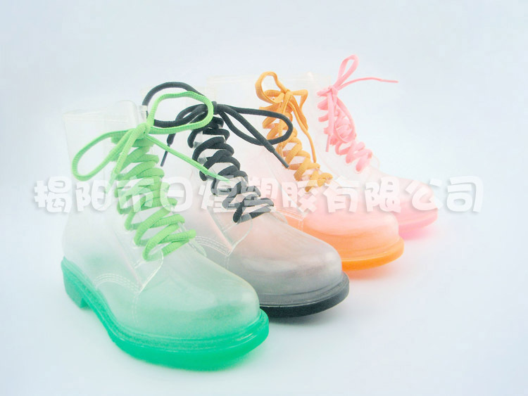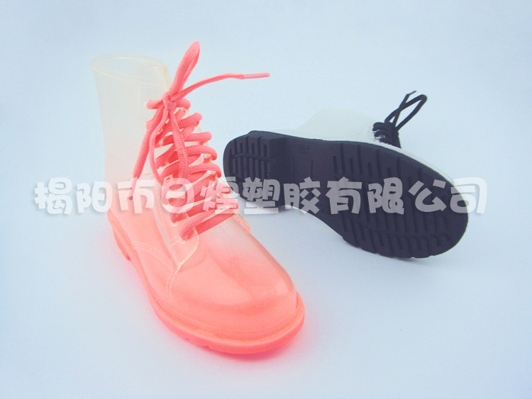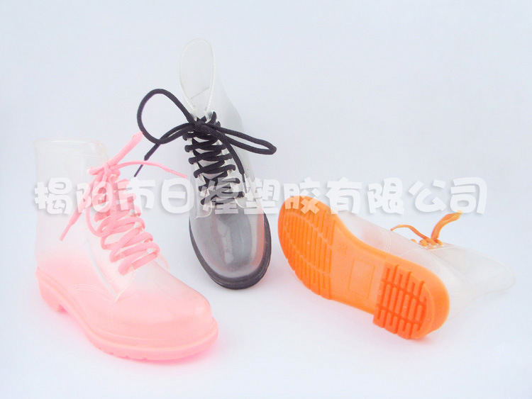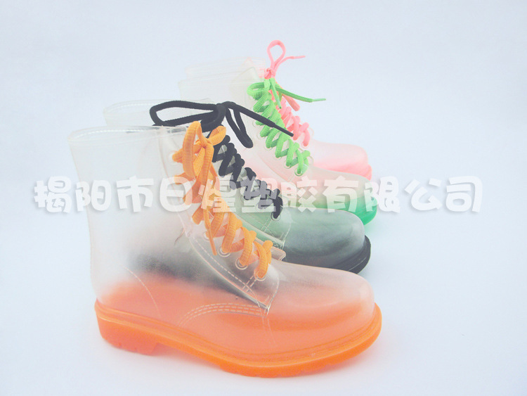 【品名】:日韓低統全透明果凍糖果色系帶女短靴 低跟女雨靴