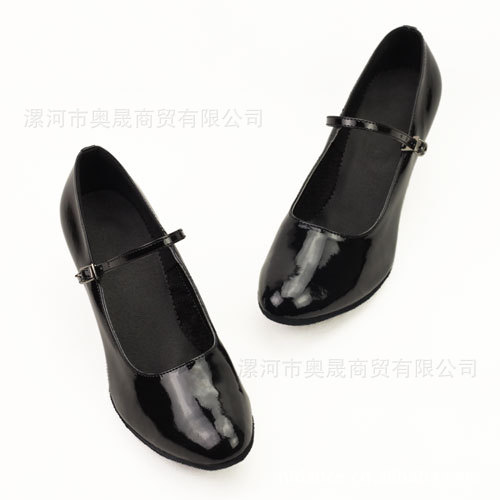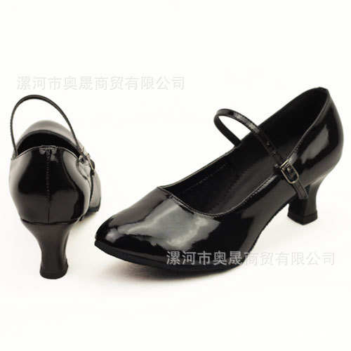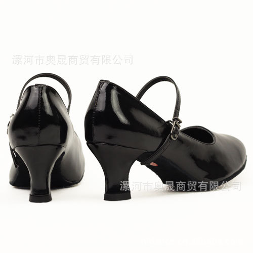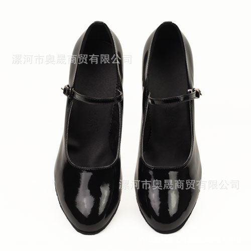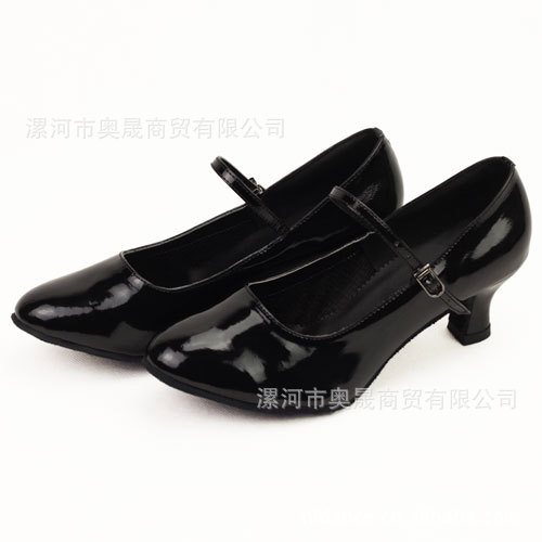 批發拉丁舞鞋女式 黑色亮革 女鞋 舞蹈鞋 交誼舞鞋