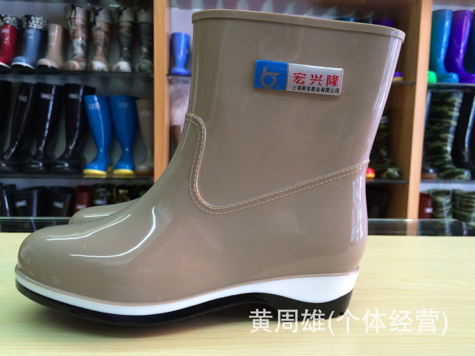 宏興隆雨美6323 純色時裝雨靴中筒 冬季保暖雨鞋雨靴 水鞋時裝鞋