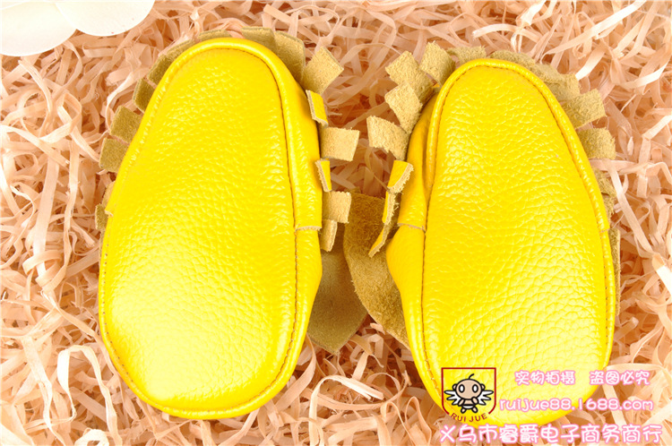 2.鞋麵采用羊皮手工縫製,安全健康,既適應瞭寶寶的小腳前後左右扭曲轉動,而不用耽心頂傷寶寶的小腳,透氣柔軟的真皮保護,又使寶寶的每一步都感覺非常舒適輕盈。