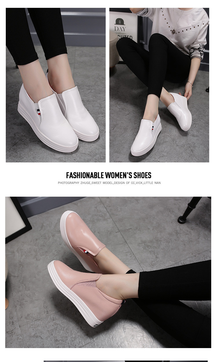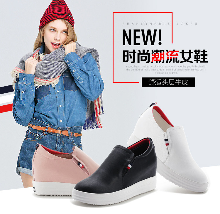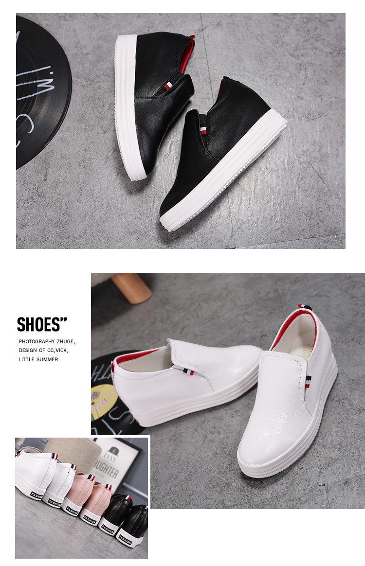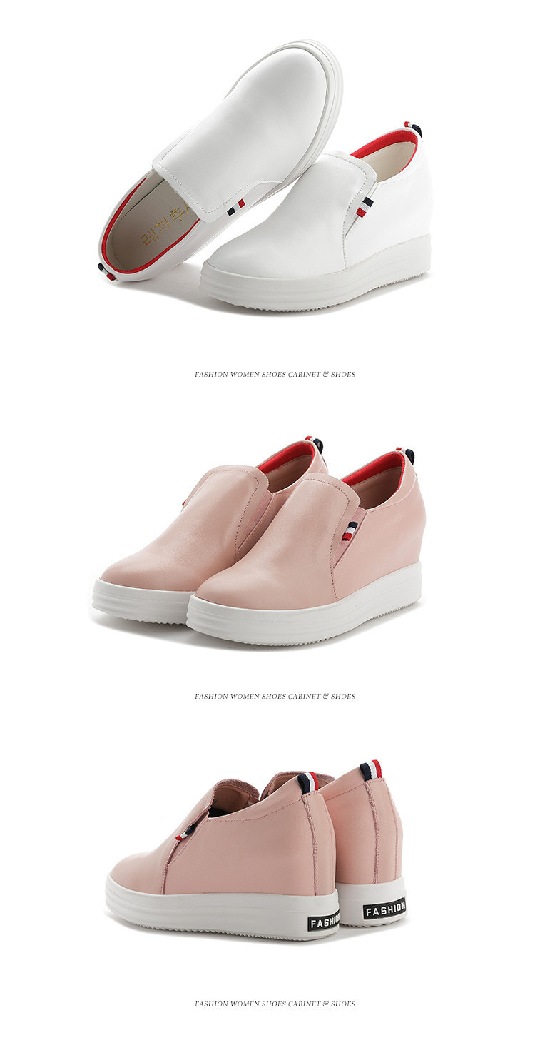 型號:km6505 價位:148 材質:頭層牛皮加進口PU 鞋底橡膠底 。顏色:黑色,白色,粉色 跟高:3.0cm 內增高:4.5cm 幫高:9.0cm 前掌寬:8.0cm 防水臺:3.0cm 35-39 現貨