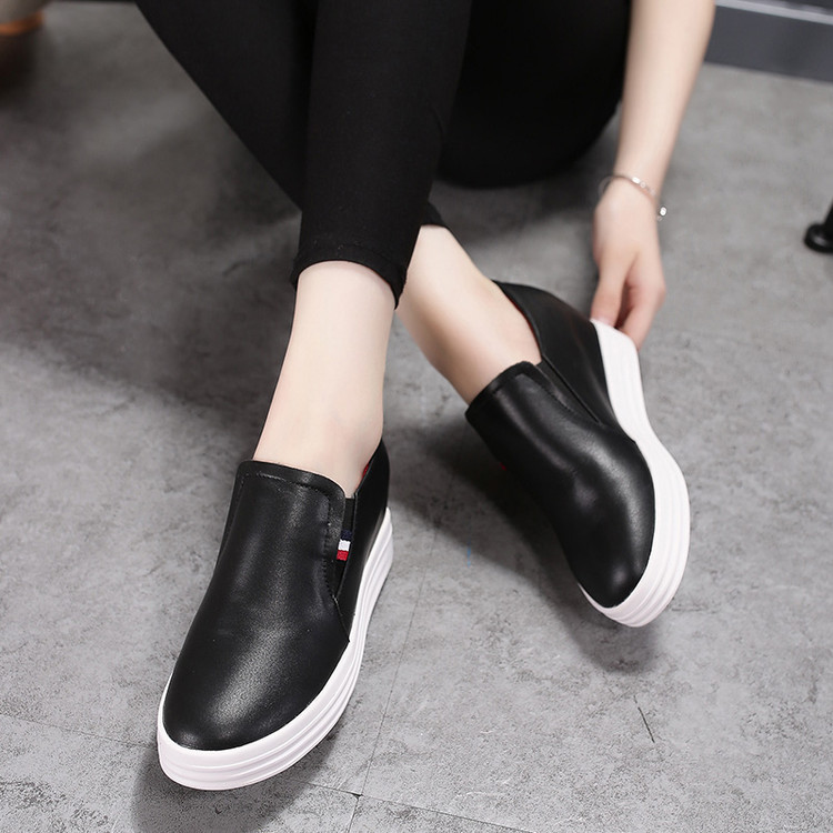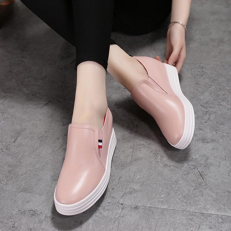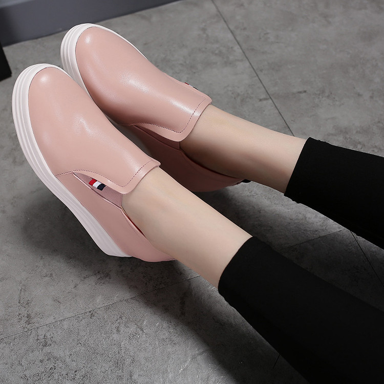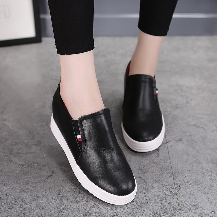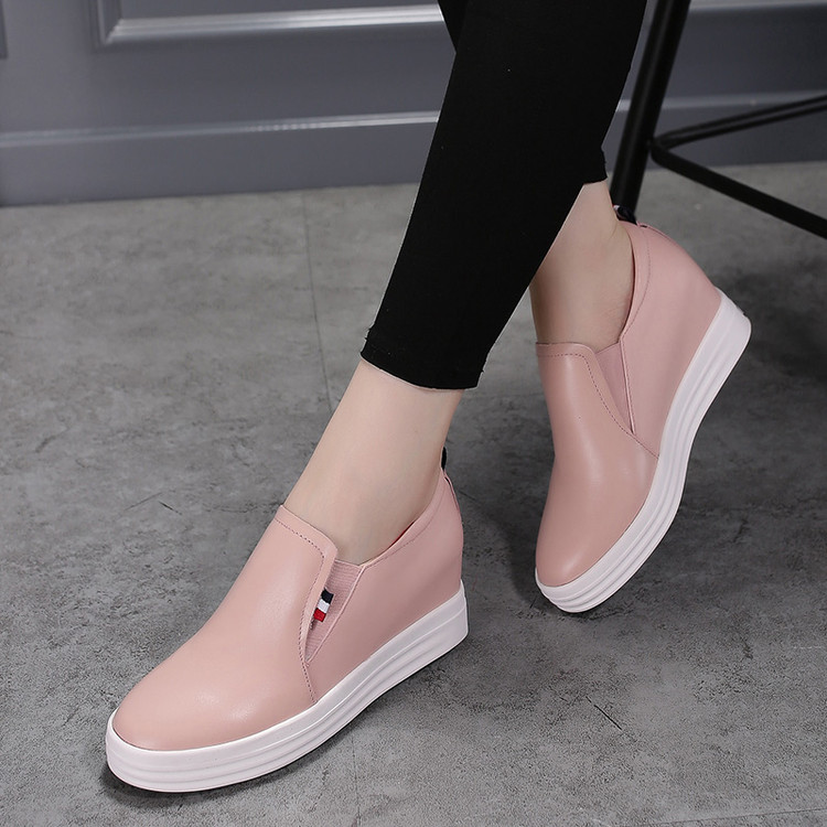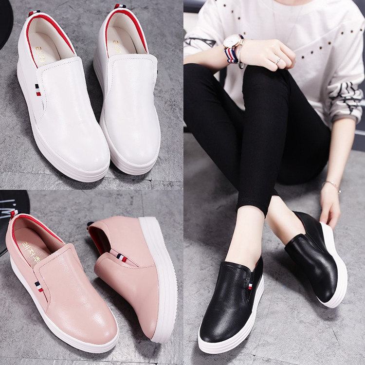 型號:km6505 價位:148 材質:頭層牛皮加進口PU 鞋底橡膠底 。顏色:黑色,白色,粉色 跟高:3.0cm 內增高:4.5cm 幫高:9.0cm 前掌寬:8.0cm 防水臺:3.0cm 35-39 現貨