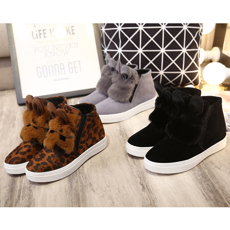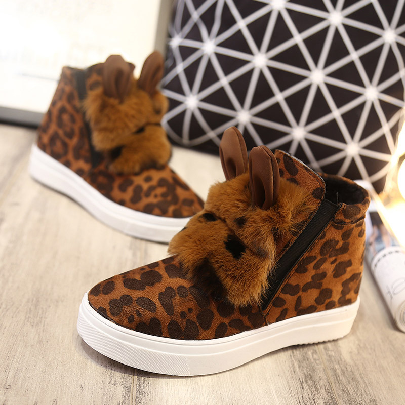 2016新款真兔毛厚底女靴流蘇貓耳朵休閒高幫單鞋時尚鞋子女批發