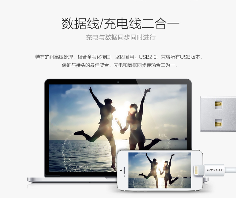 品勝的數據線一直以堪比原裝的好品質穩居銷量榜冠軍,現在品勝蘋果快充數據線上市瞭!為iPad Air充電的速度比品勝第一代數據線快瞭10%-20%,針對蘋果原裝線“脖子”容易斷這點來說,品勝快充數據線內銅直徑加粗,更加耐用,無需擔心斷裂的問題,這也是品勝數據線如此受歡迎的原因!