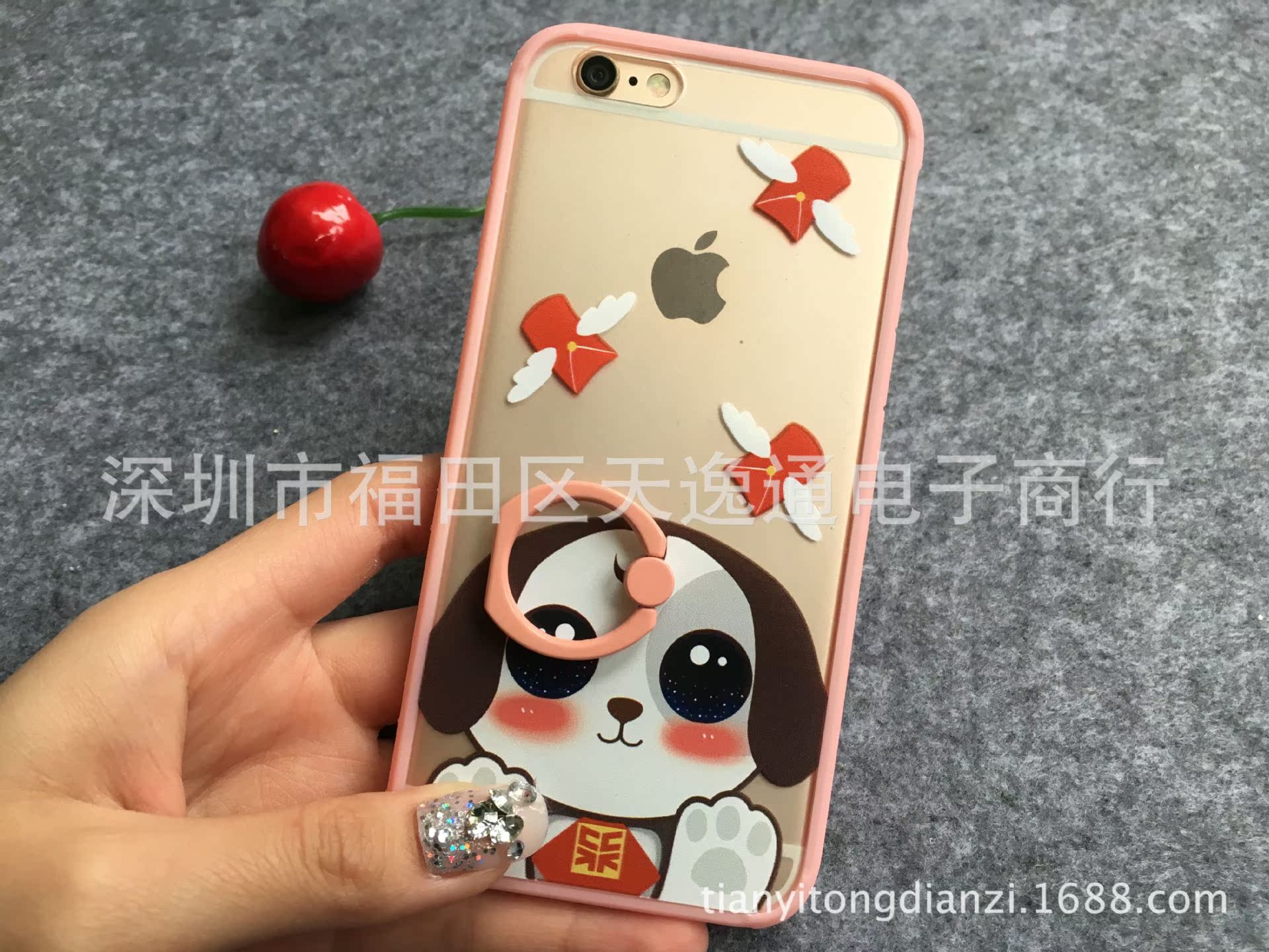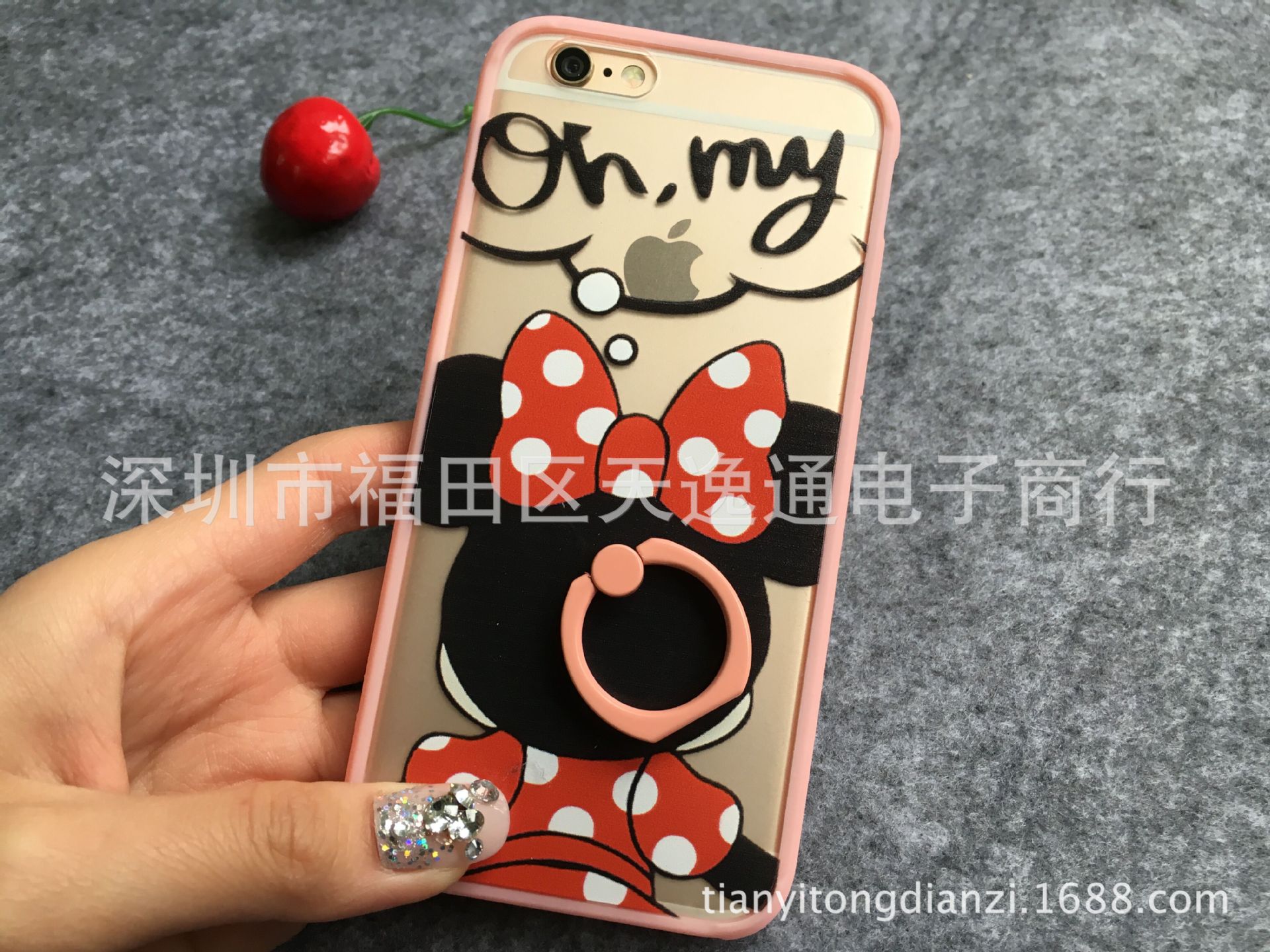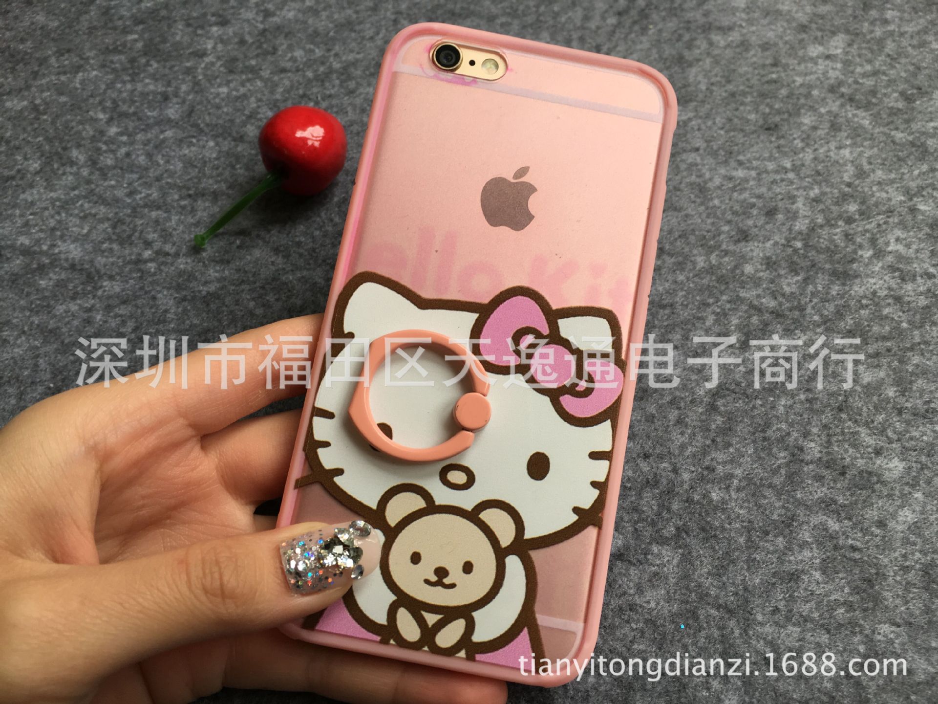 iphone6 4.7&iphone6 plus 日韓系列蠶絲紋軟邊指環支架殼