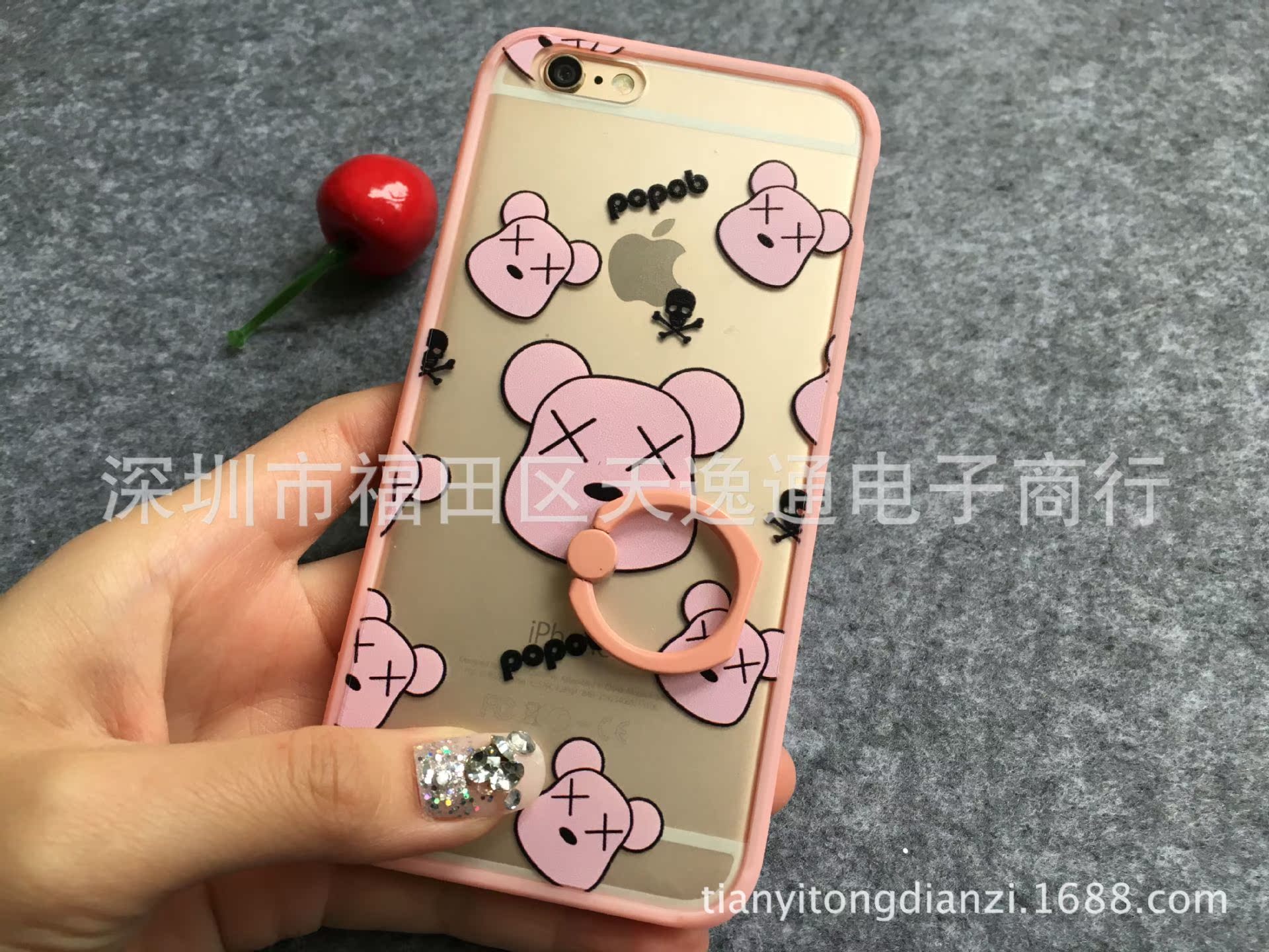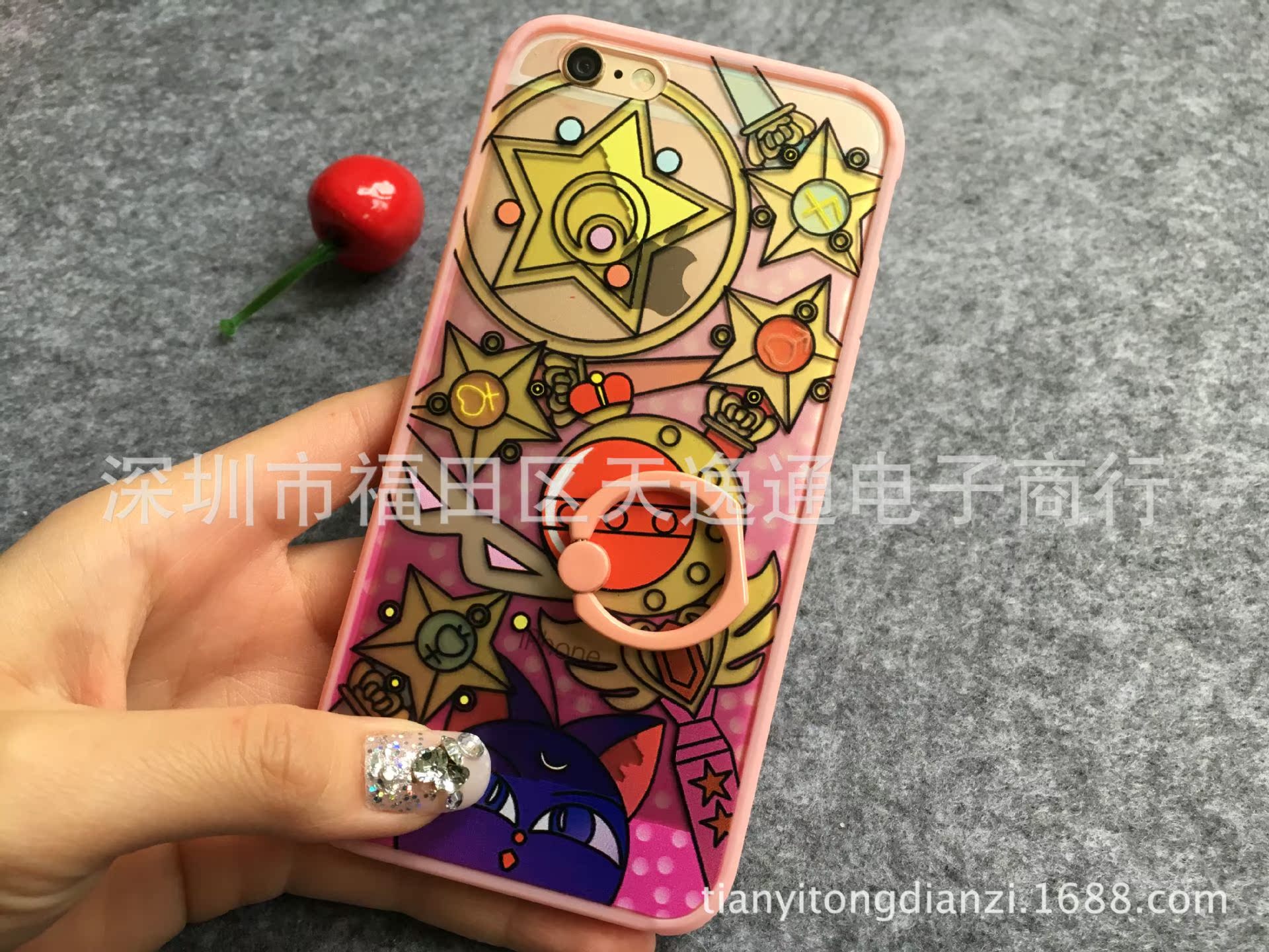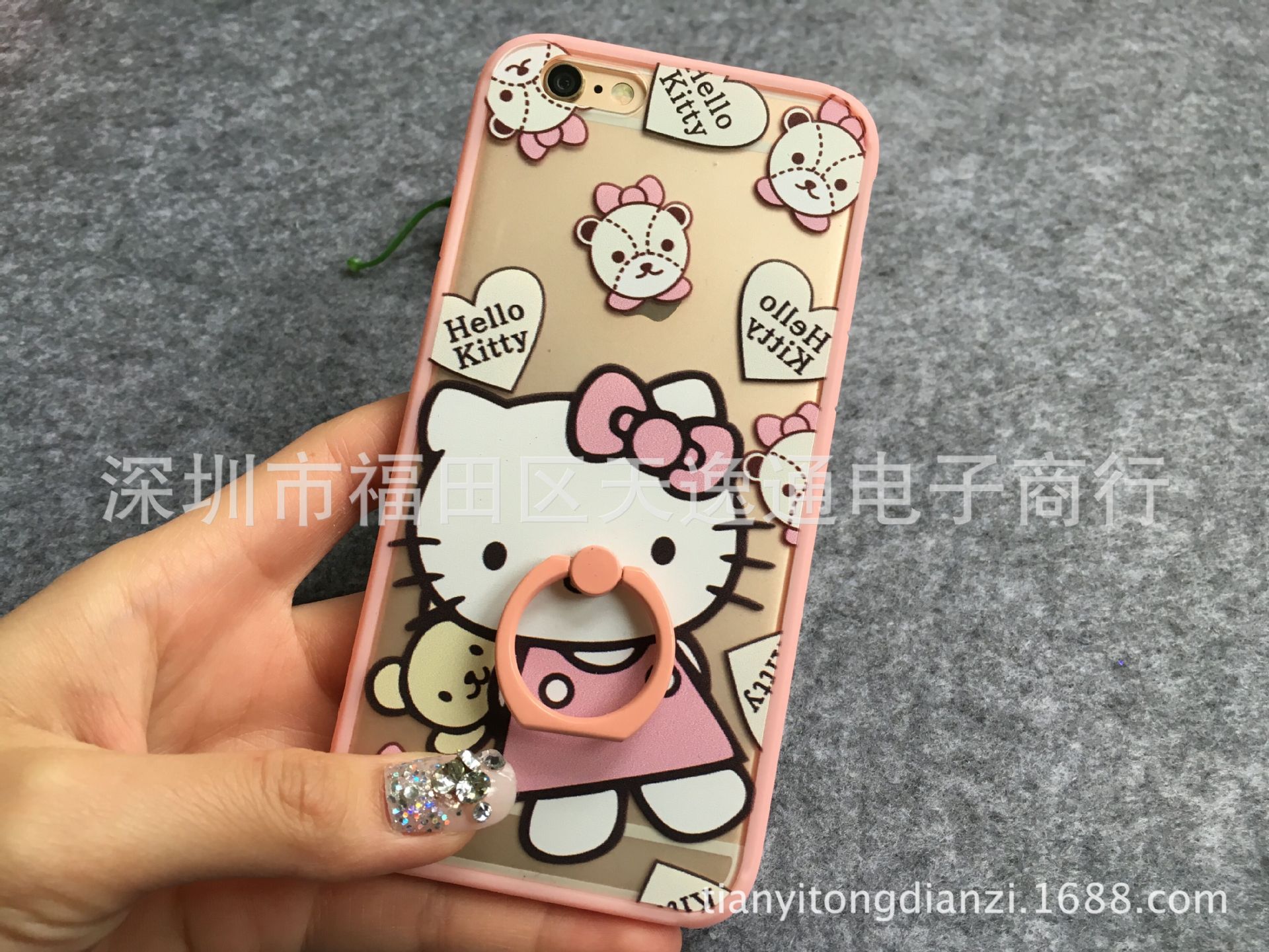 iphone6 4.7&iphone6 plus 日韓系列蠶絲紋軟邊指環支架殼