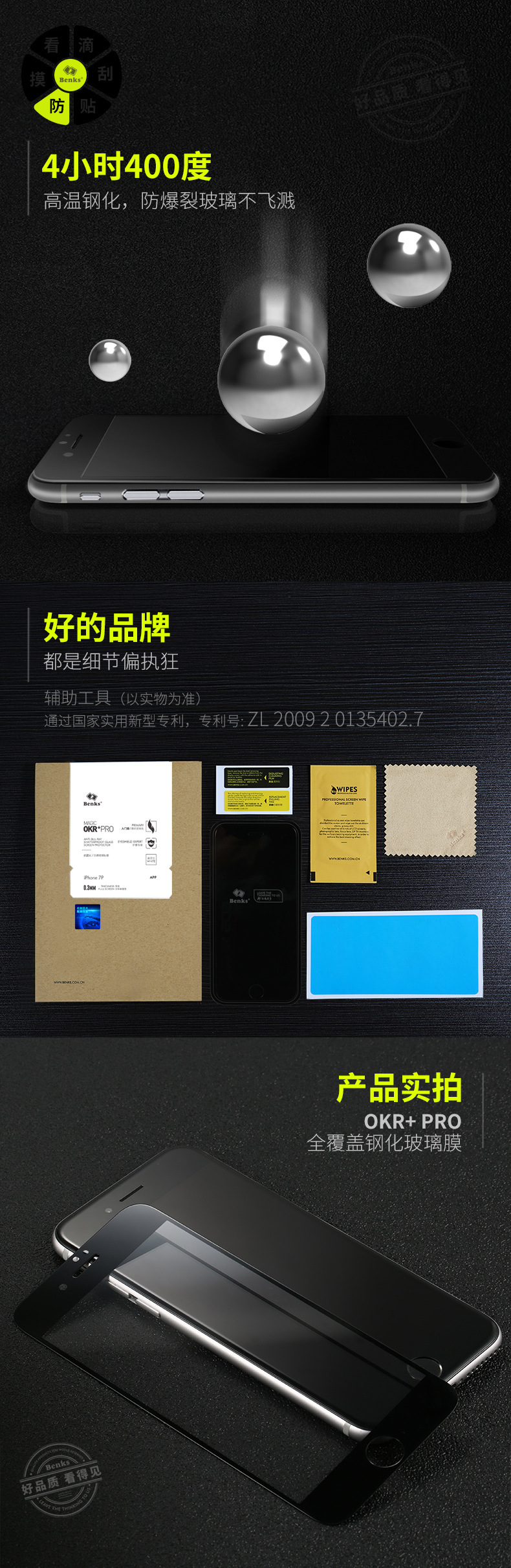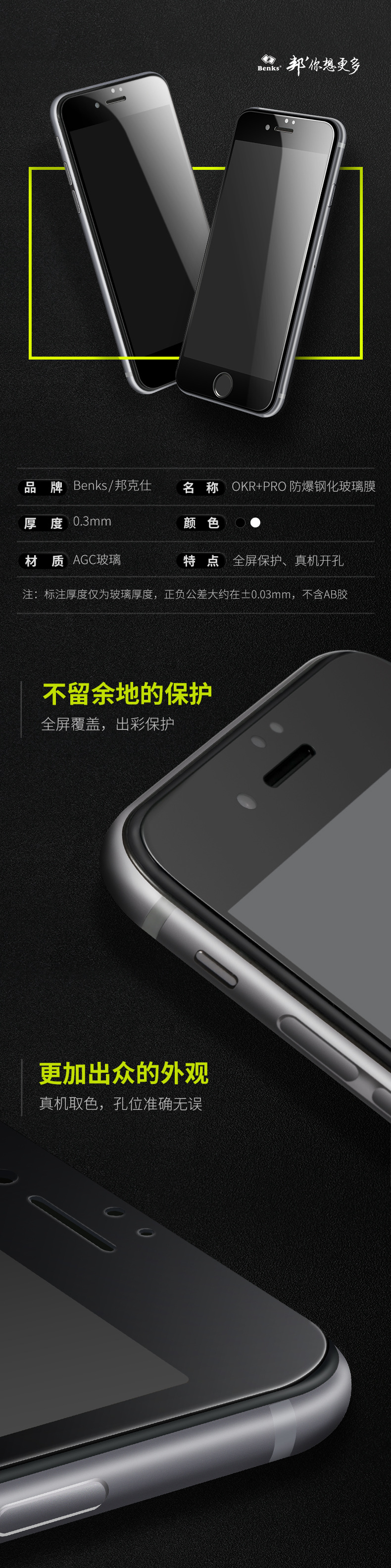 BENKS/邦克仕 iPhone7 plus OKR+ PRO 全覆蓋抗藍光鋼化玻璃膜0.3MM