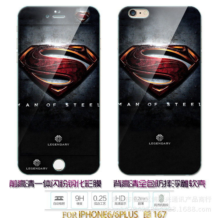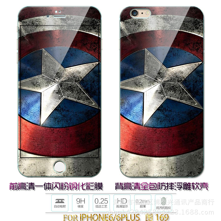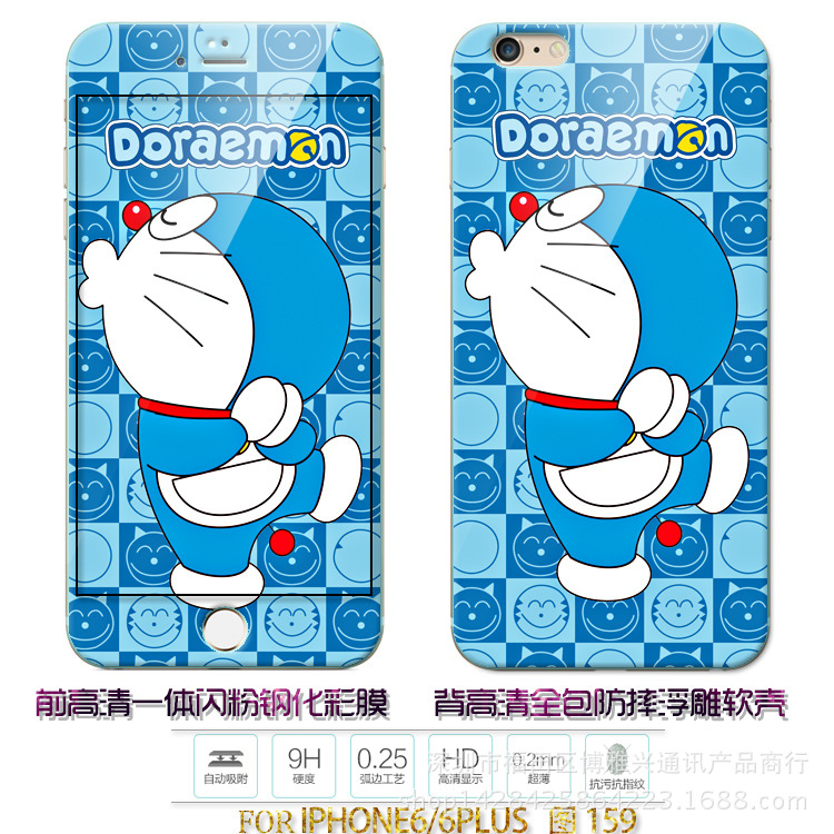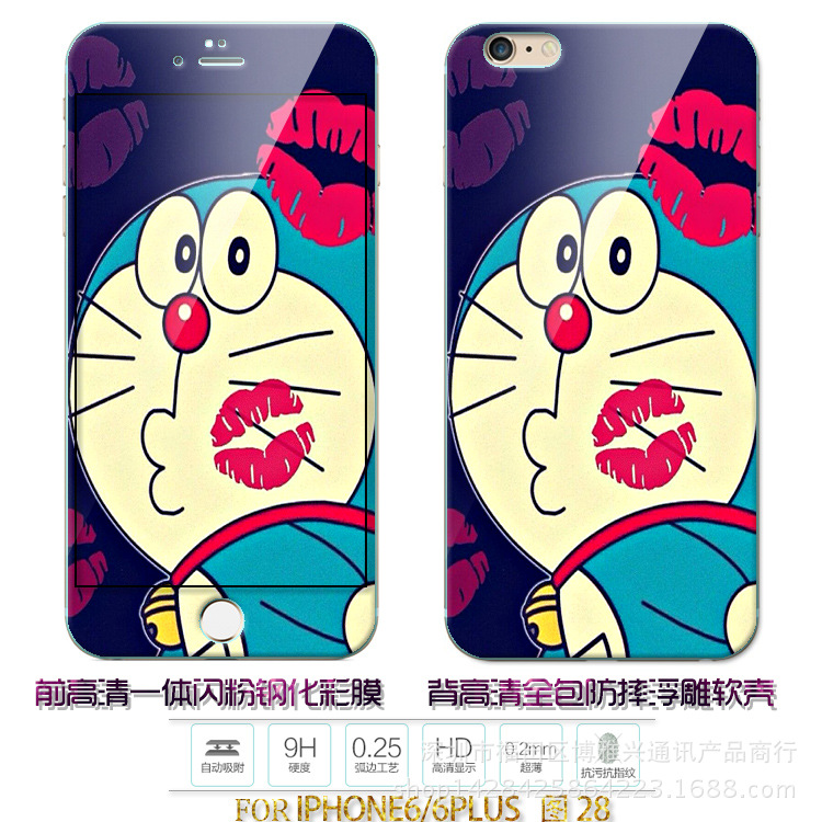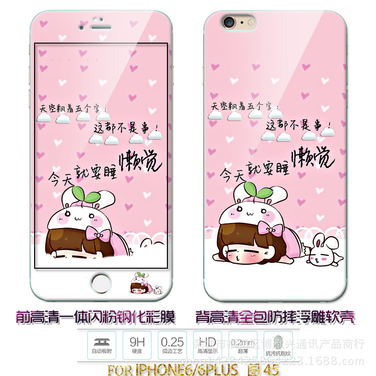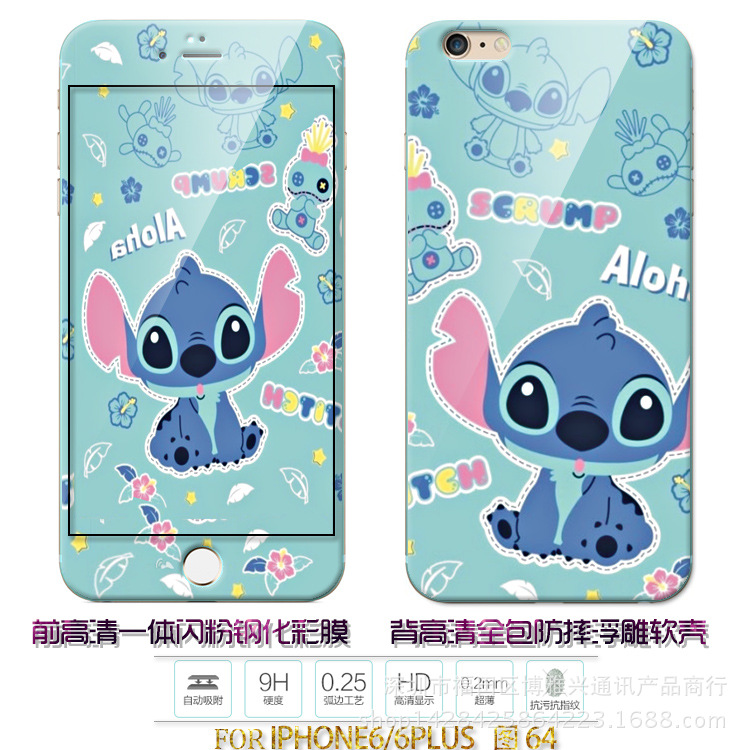 iPhone6/6s 殼+膜iPhone6/6splus 卡通鋼化彩膜加高清浮雕軟殼